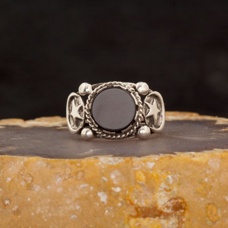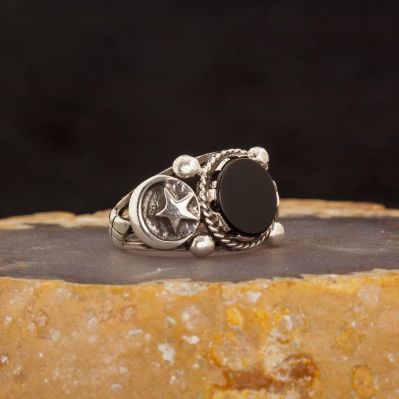 Oniks Taşlı El İşi Gümüş Yüzük |