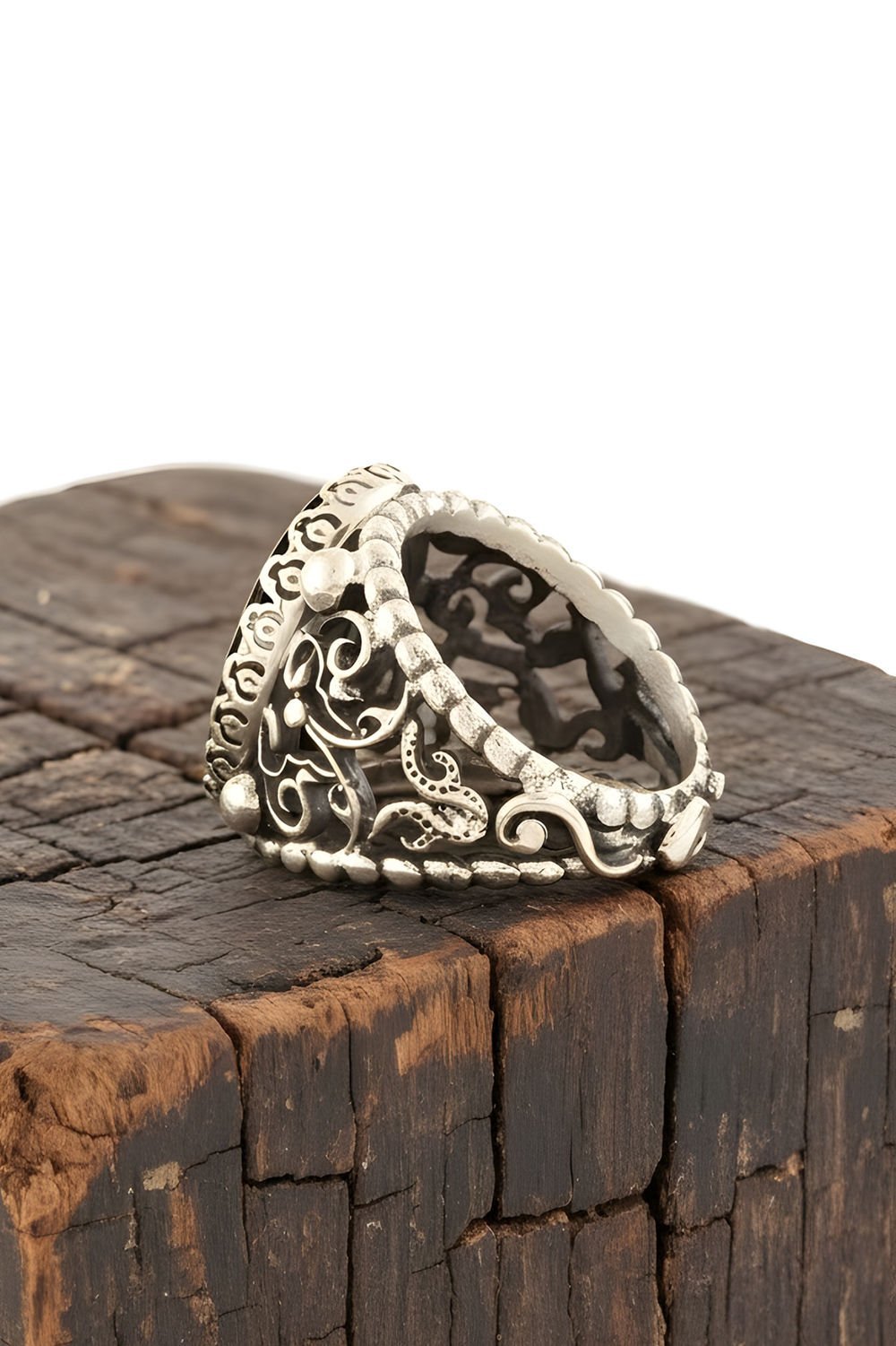 Oniks Taşlı El İşi Gümüş Yüzük |