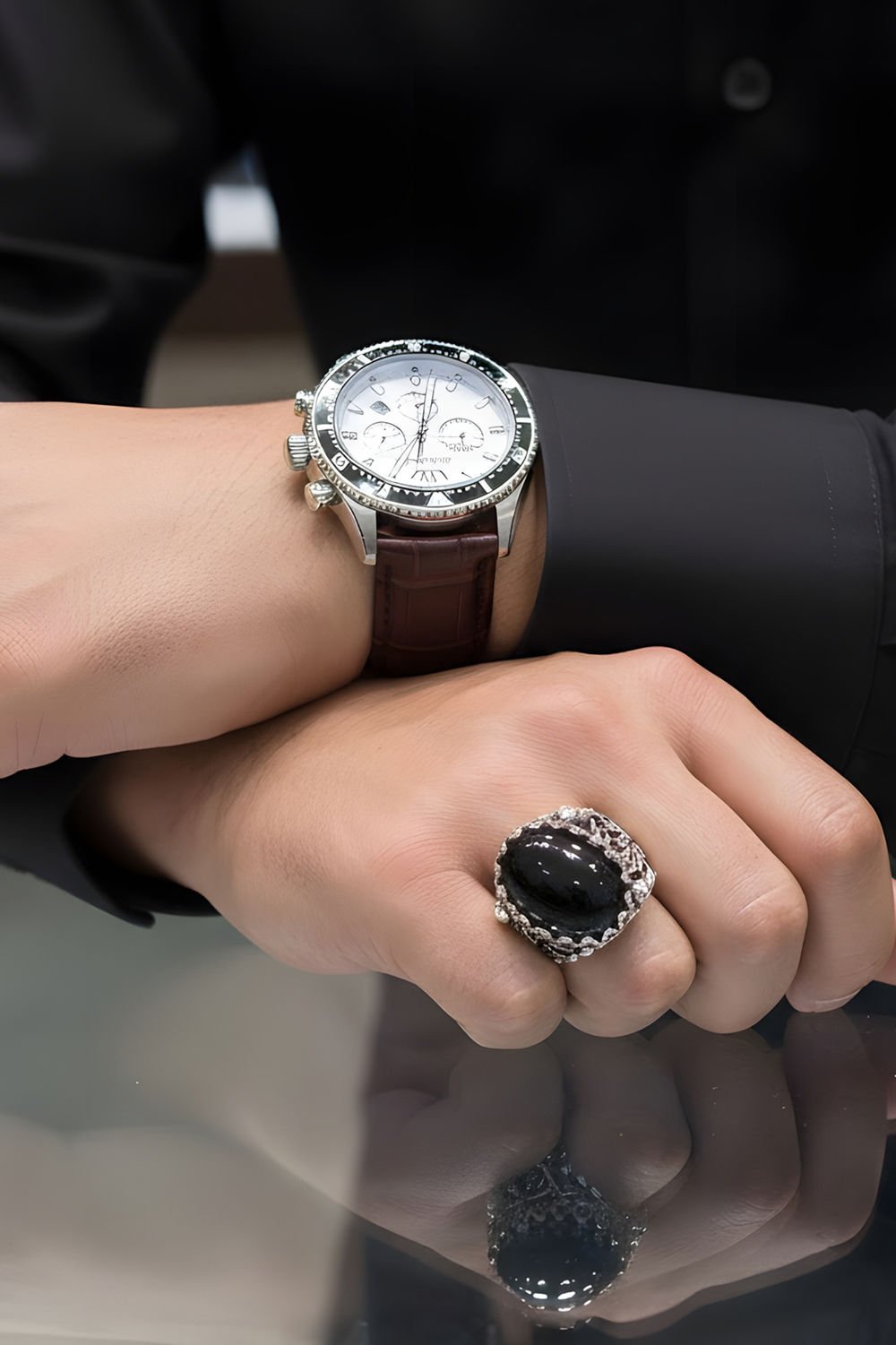 Eşsiz ve özel bir dokunuşla hazırlanmış bu erkek yüzük, doğal oniks taşı, usta el işçiliği, ve 925 ayar gümüşle öne çıkıyor. Her detayında özenle işlenmiş, şıklığı ve zarafeti bir araya getiren bu yüzük, özel günlerde veya günlük kullanımda tarzınızı tamamlayacak.