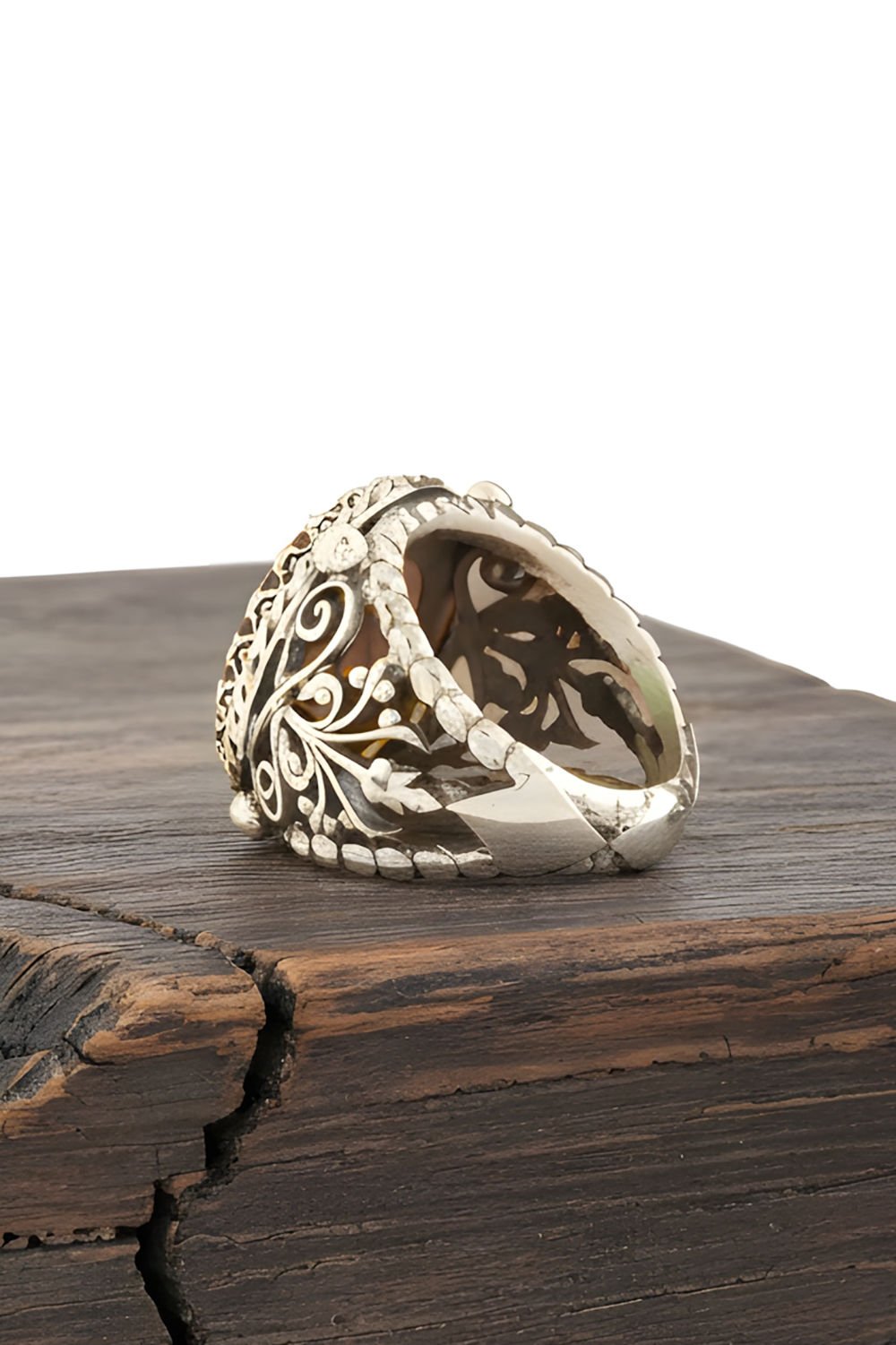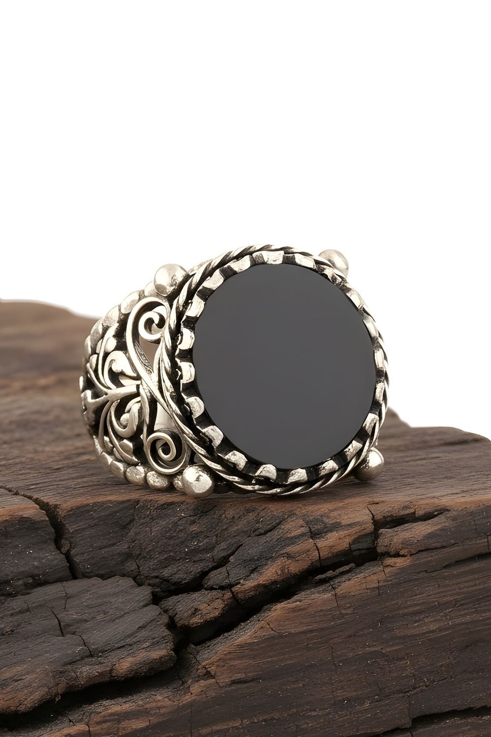 Oniks Taşlı El İşi Hayat Ağacı Desenli Yüzük |