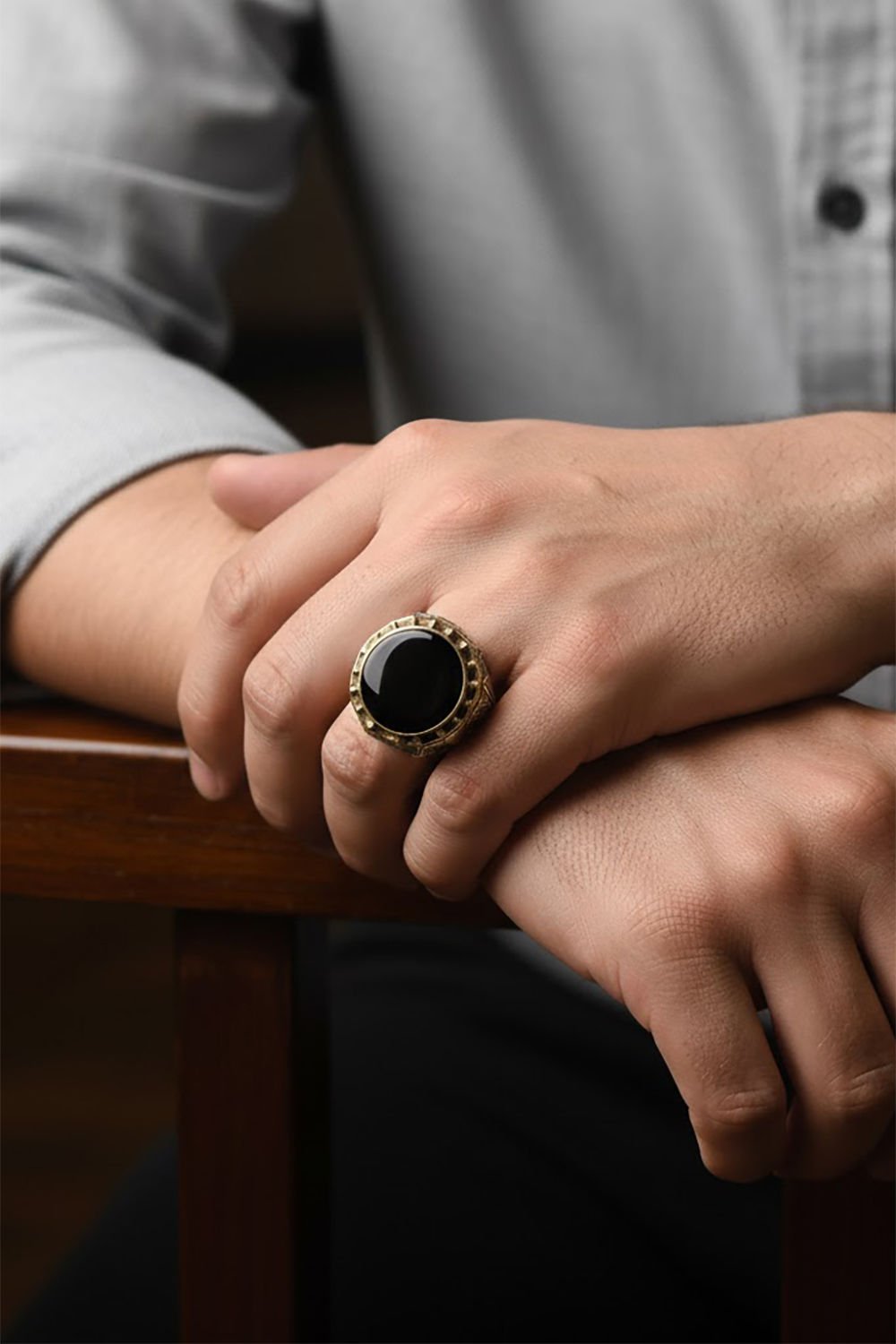 Hakiki ve orijinal doğal taşlar kullandığımız yüzüklerin bu modelinde Oniks taşını kullanıyoruz.