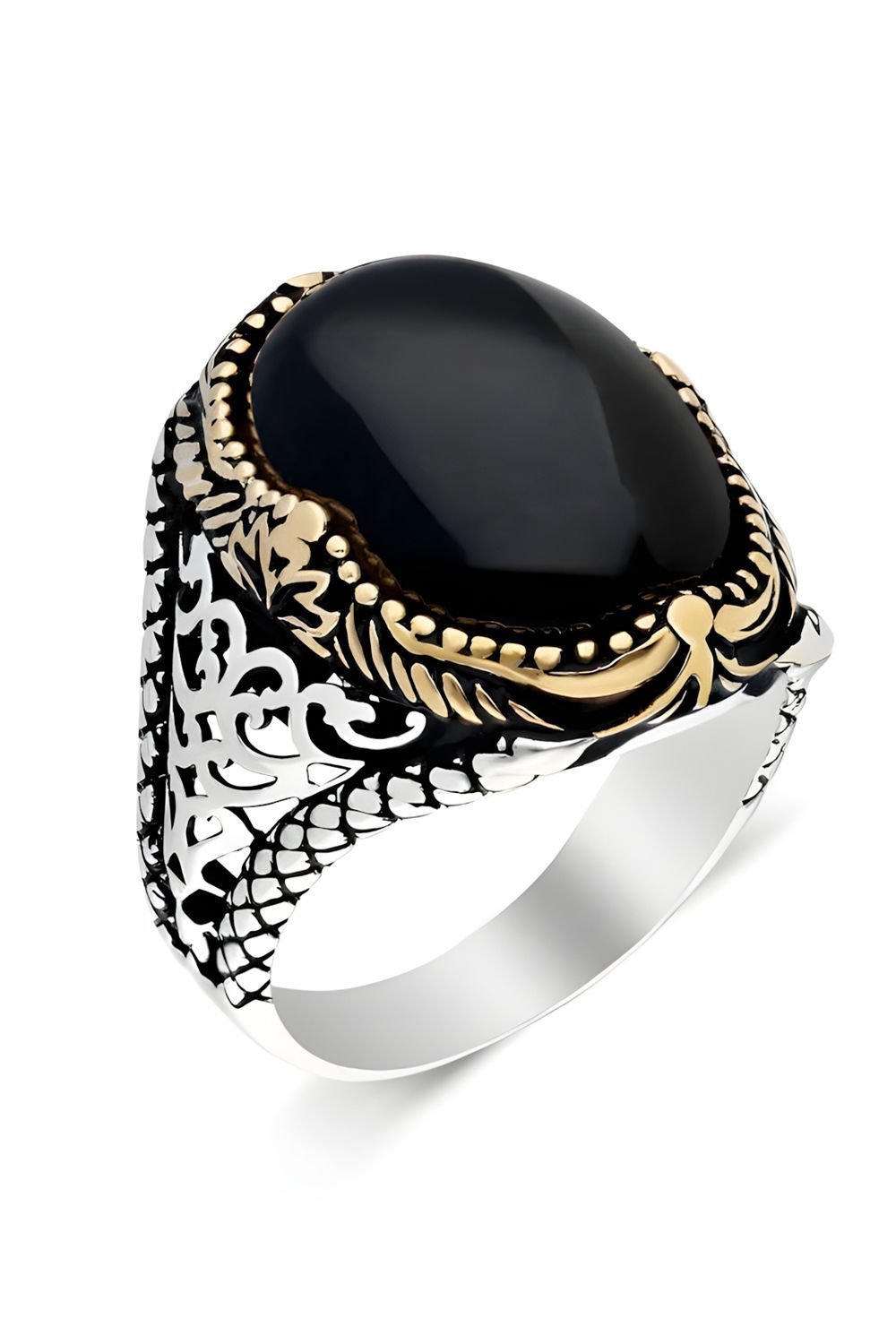 Oniks Taşlı Gümüş Erkek Yüzük |