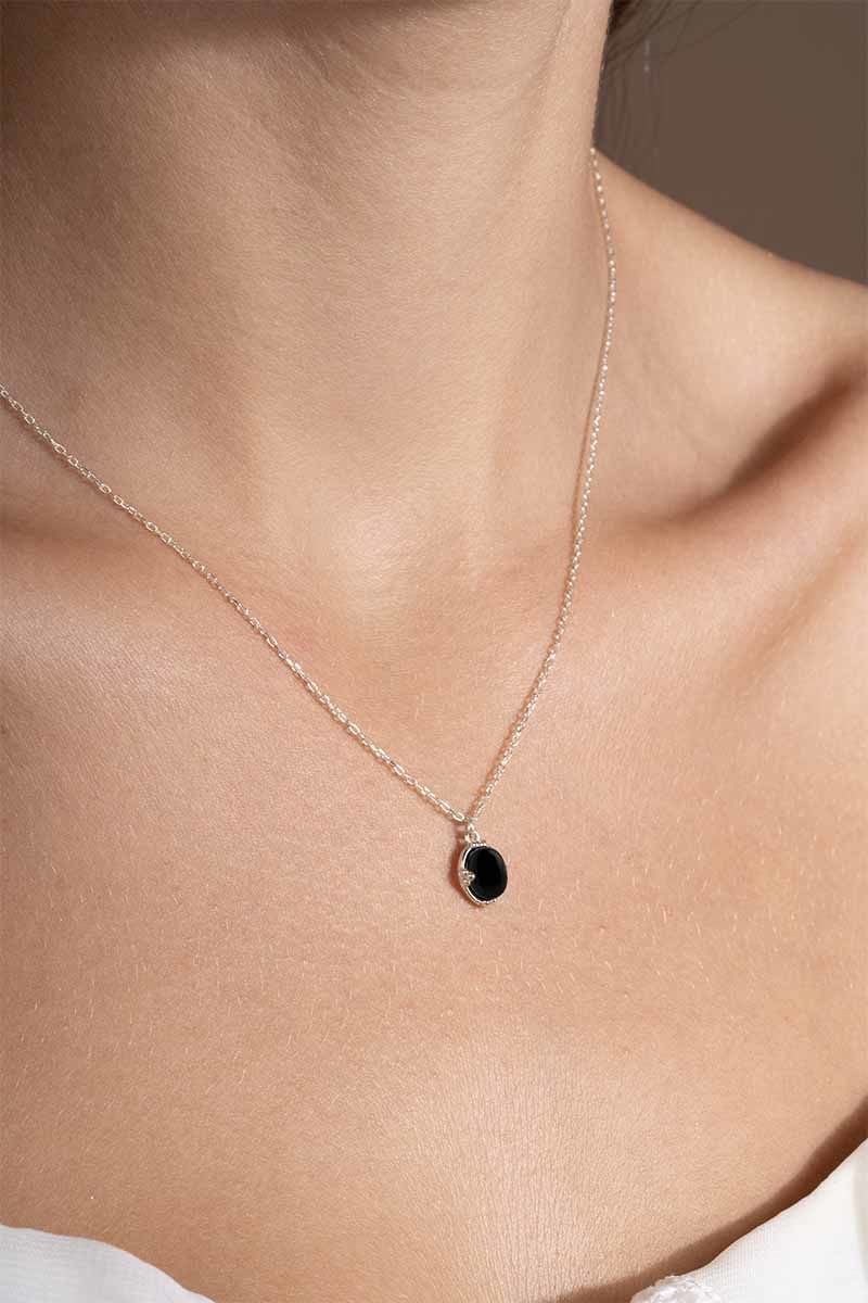 Oniks Taşlı Minimal Gümüş Kadın Kolye