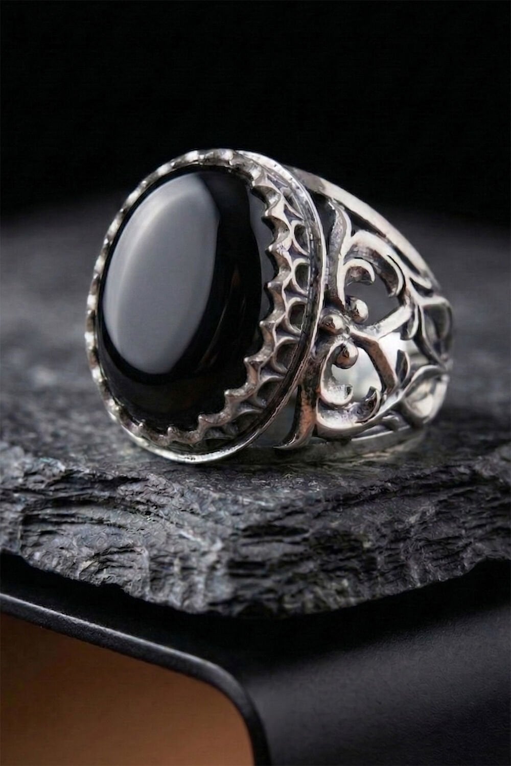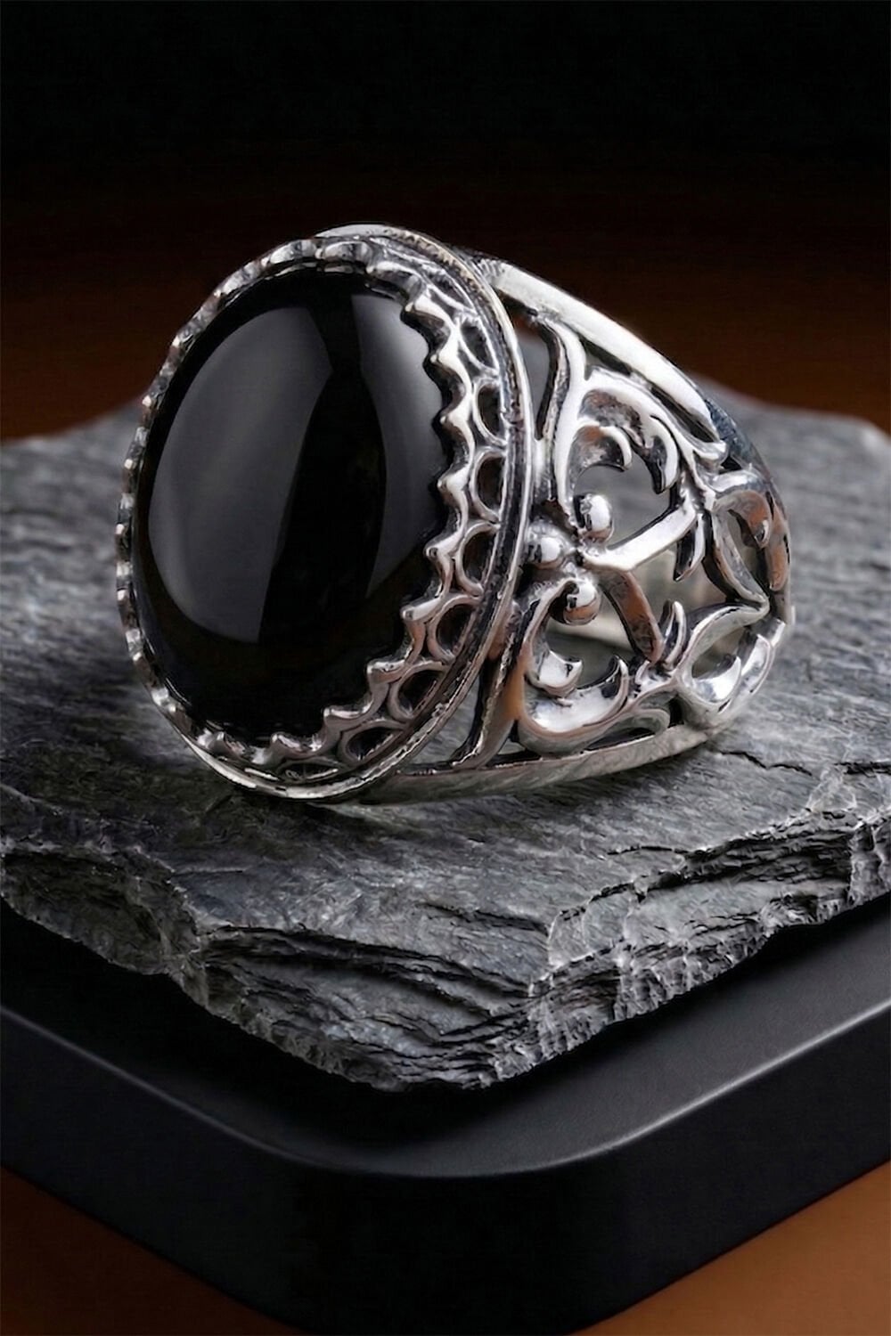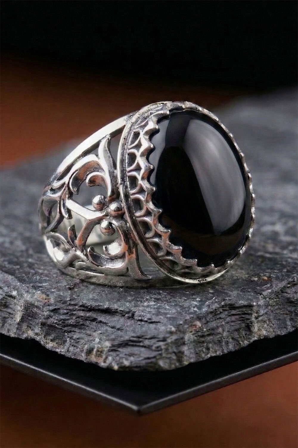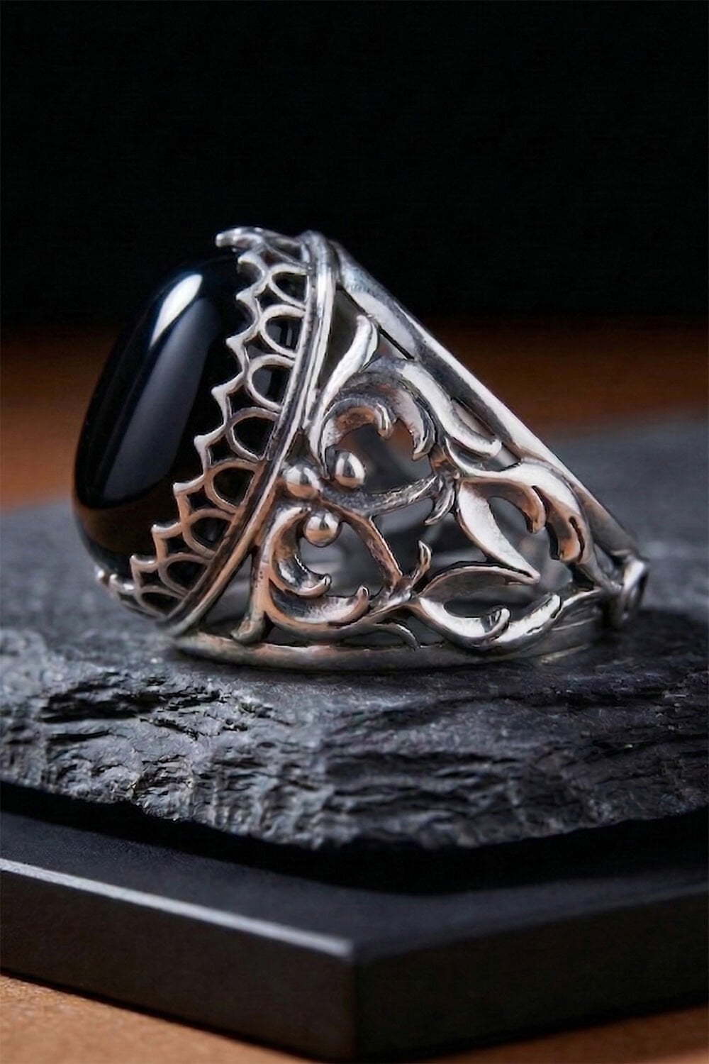 Oniks Taşlı 925 Ayar Gümüş El İşçiliği Erkek Yüzük – Özel Tasarım