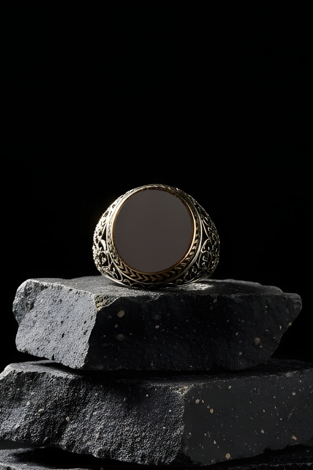 Hakiki ve orijinal doğal taşlar kullandığımız yüzüklerin bu modelinde Oniks taşını kullanıyoruz.