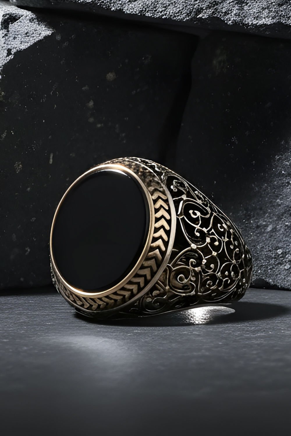 Oniks Taşlı Sarmaşık Model Gümüş Yüzük |