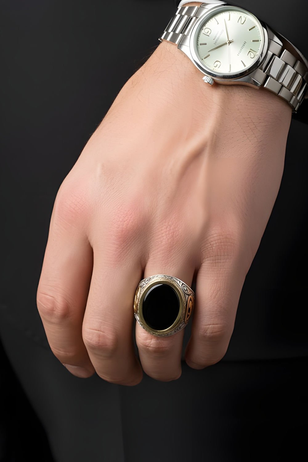 Hakiki ve orijinal doğal taşlar kullandığımız yüzüklerin bu modelinde Oniks taşını kullanıyoruz.
