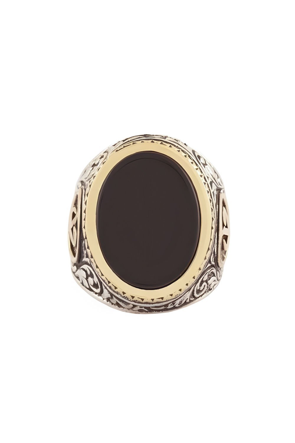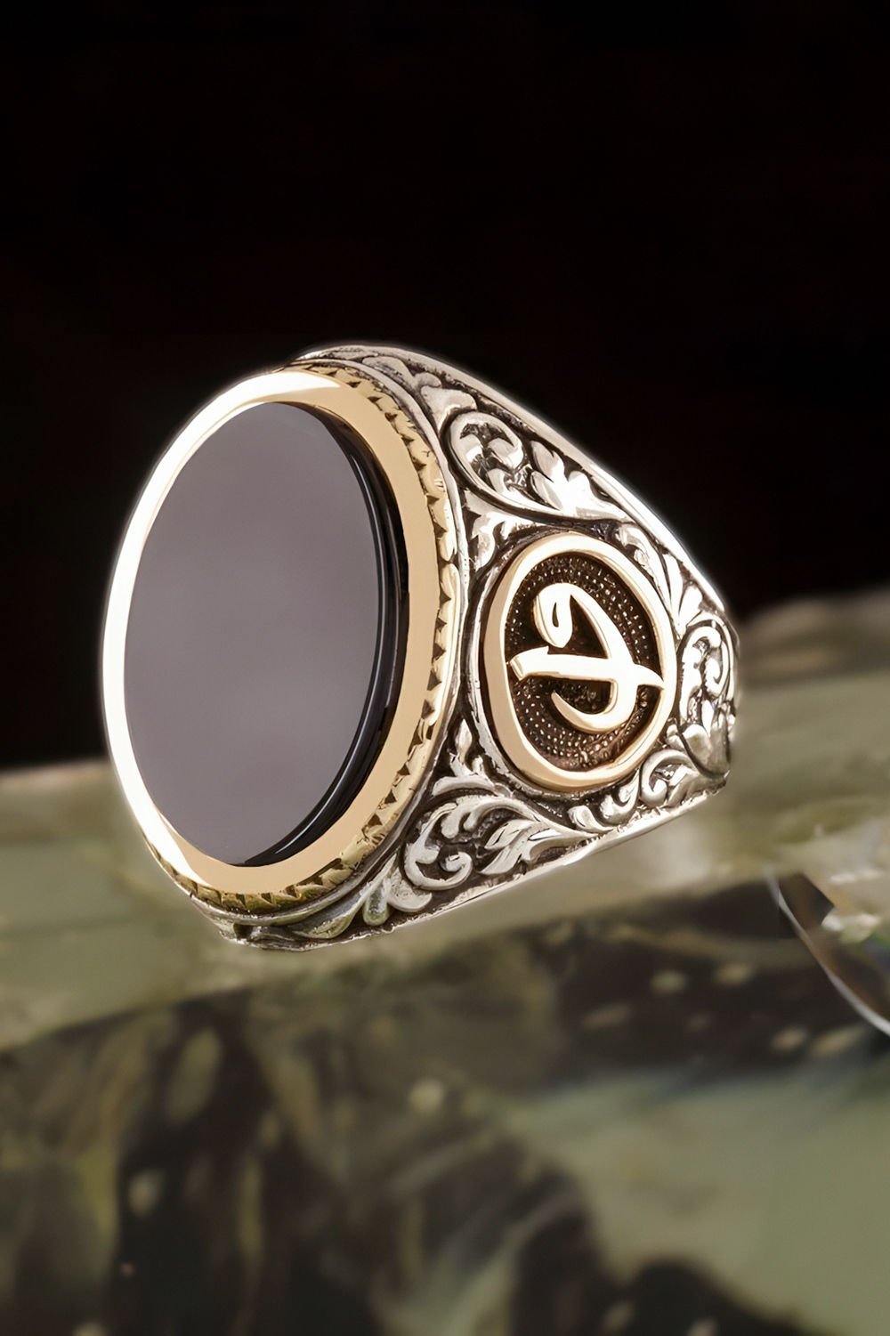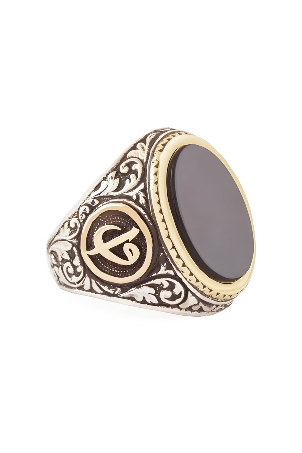 Oniks Taşlı Vav Elif Desenli Gümüş Yüzük |