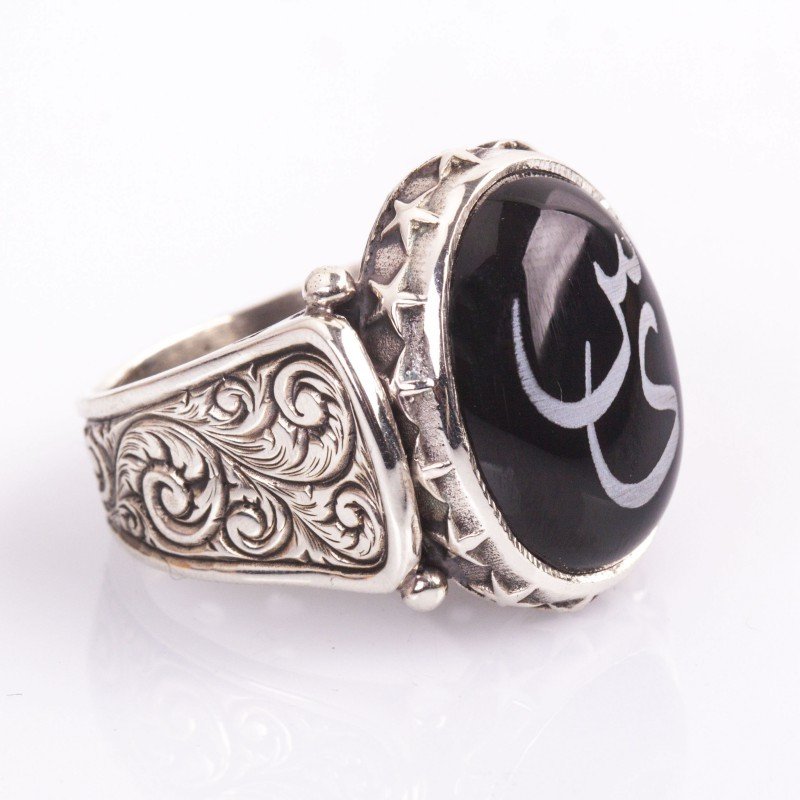 Oniks Üzeri Harfli Kişiye Özel Gümüş Yüzük |