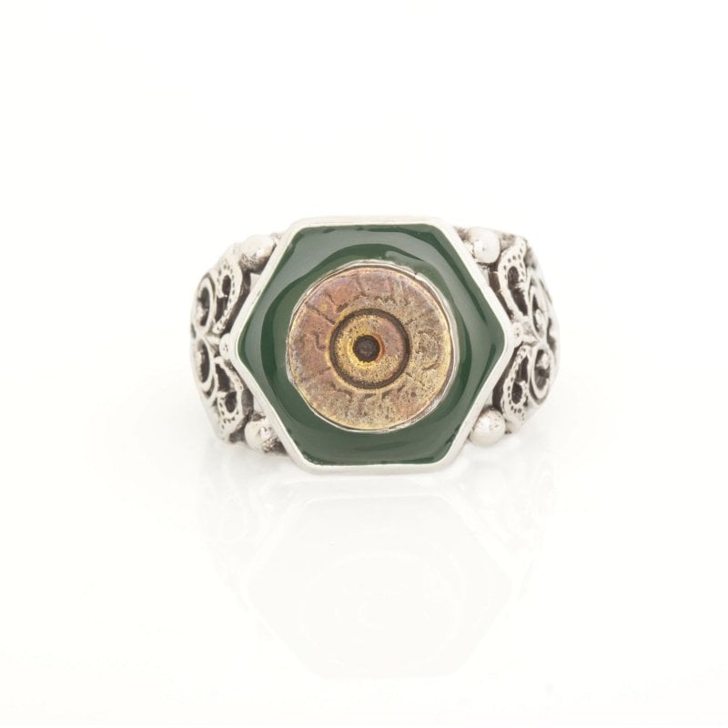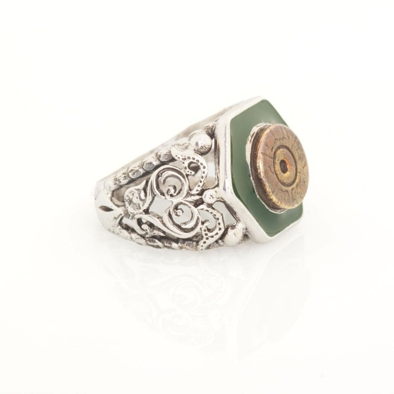 Bu özel yüzük, el işçiliği detayları ve orijinal Çanakkale mermi kovanı ile öne çıkıyor. 925 ayar gümüş, modern ve klasik unsurları bir araya getirerek benzersiz bir tasarım sunar. Özel işçilik detayları, her bir yüzüğün sanat ve tarih arasında köprü kurduğunu gösterir.