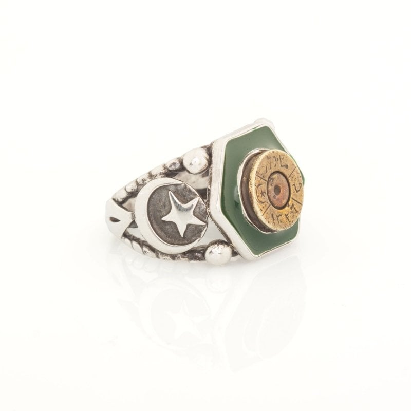 Bu özel yüzük, el işçiliği detayları ve orijinal Çanakkale mermi kovanı ile öne çıkıyor. 925 ayar gümüş, modern ve klasik unsurları bir araya getirerek benzersiz bir tasarım sunar. Özel işçilik detayları, her bir yüzüğün sanat ve tarih arasında köprü kurduğunu gösterir.