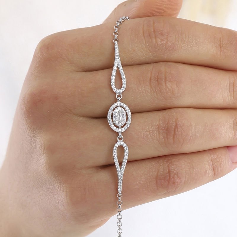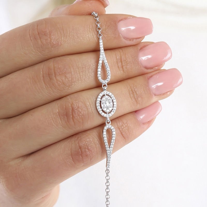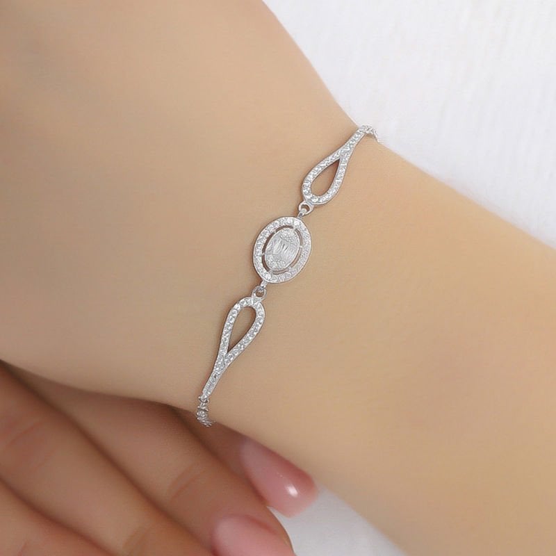 Oval Baget Zirkon Taşlı Gümüş Bileklik |