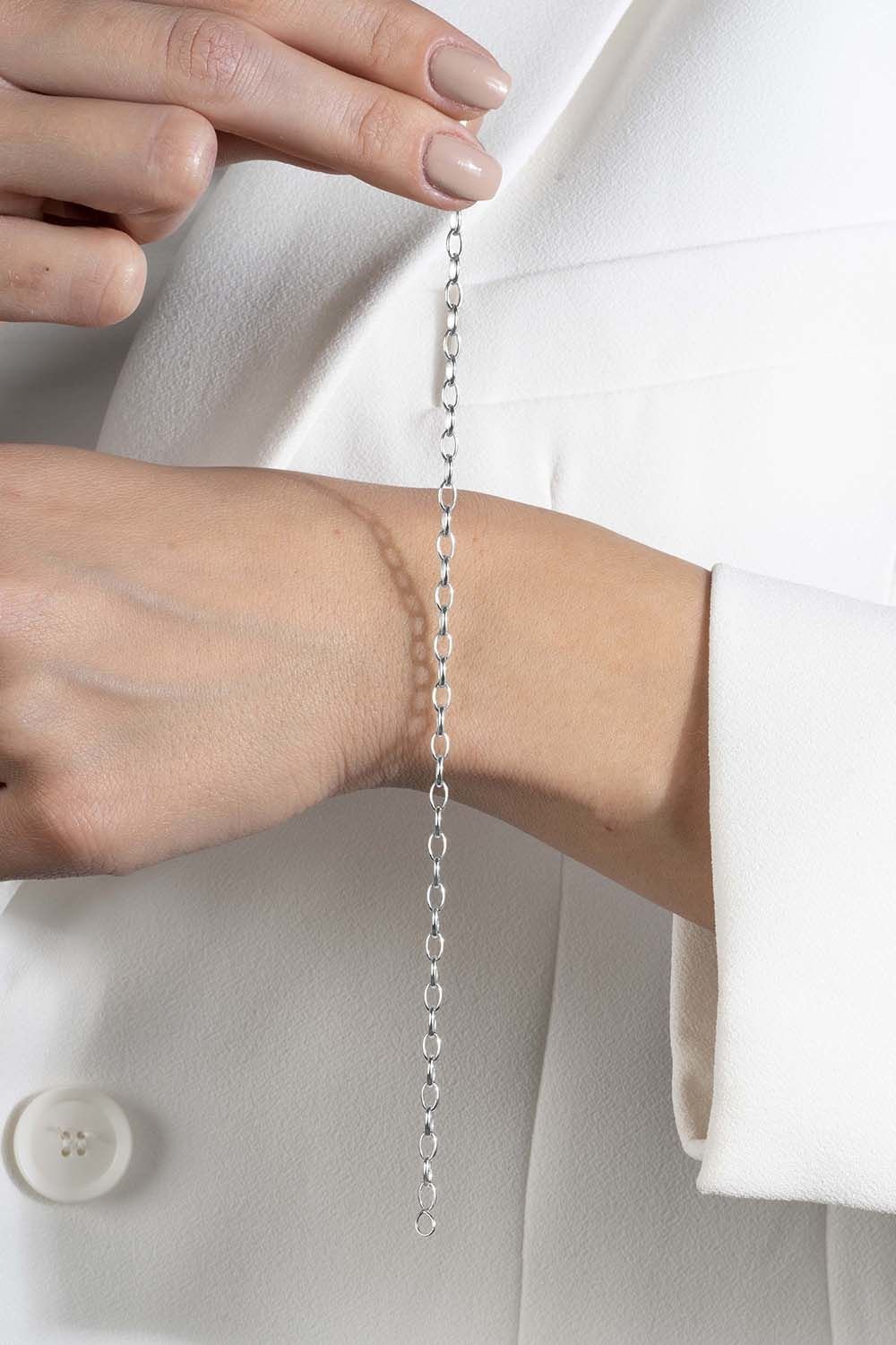 Farklı renklerde (silver, gold, rose) hazırlayabildiğimiz, klasik desenlere sahip gümüş zincir bileklik modelimiz. Bileklik, 925 ayar gümüş ile imal edilmiştir. Sipariş verildikten sonra 1-2 iş günü içerisinde kargoya verilir.
