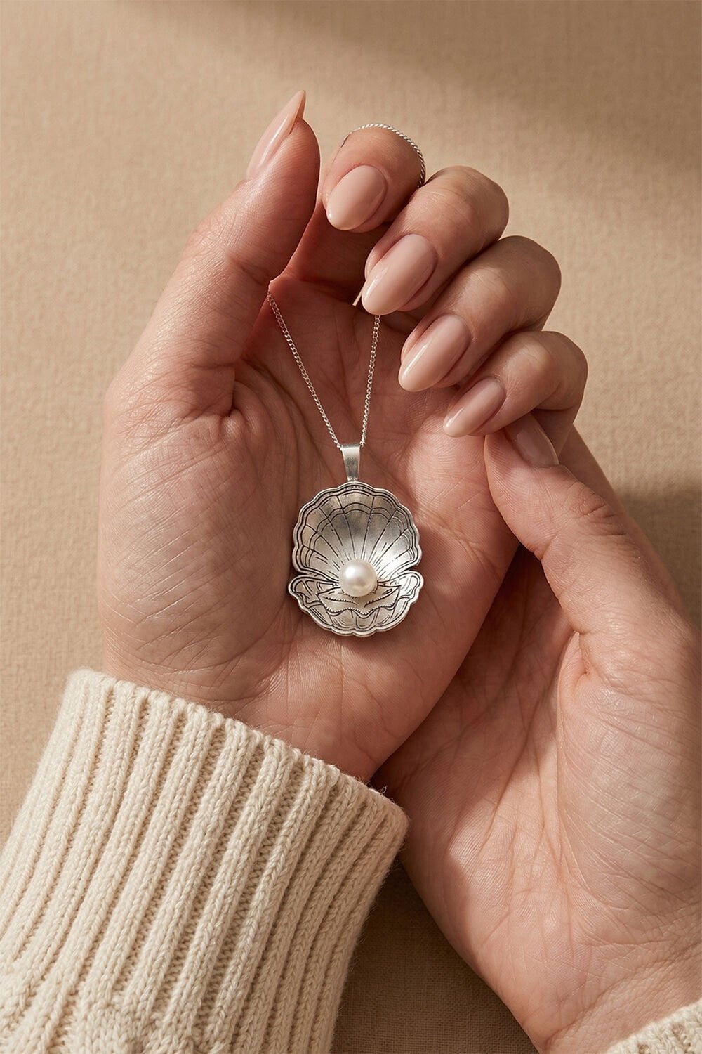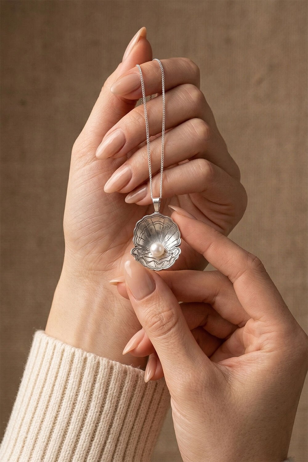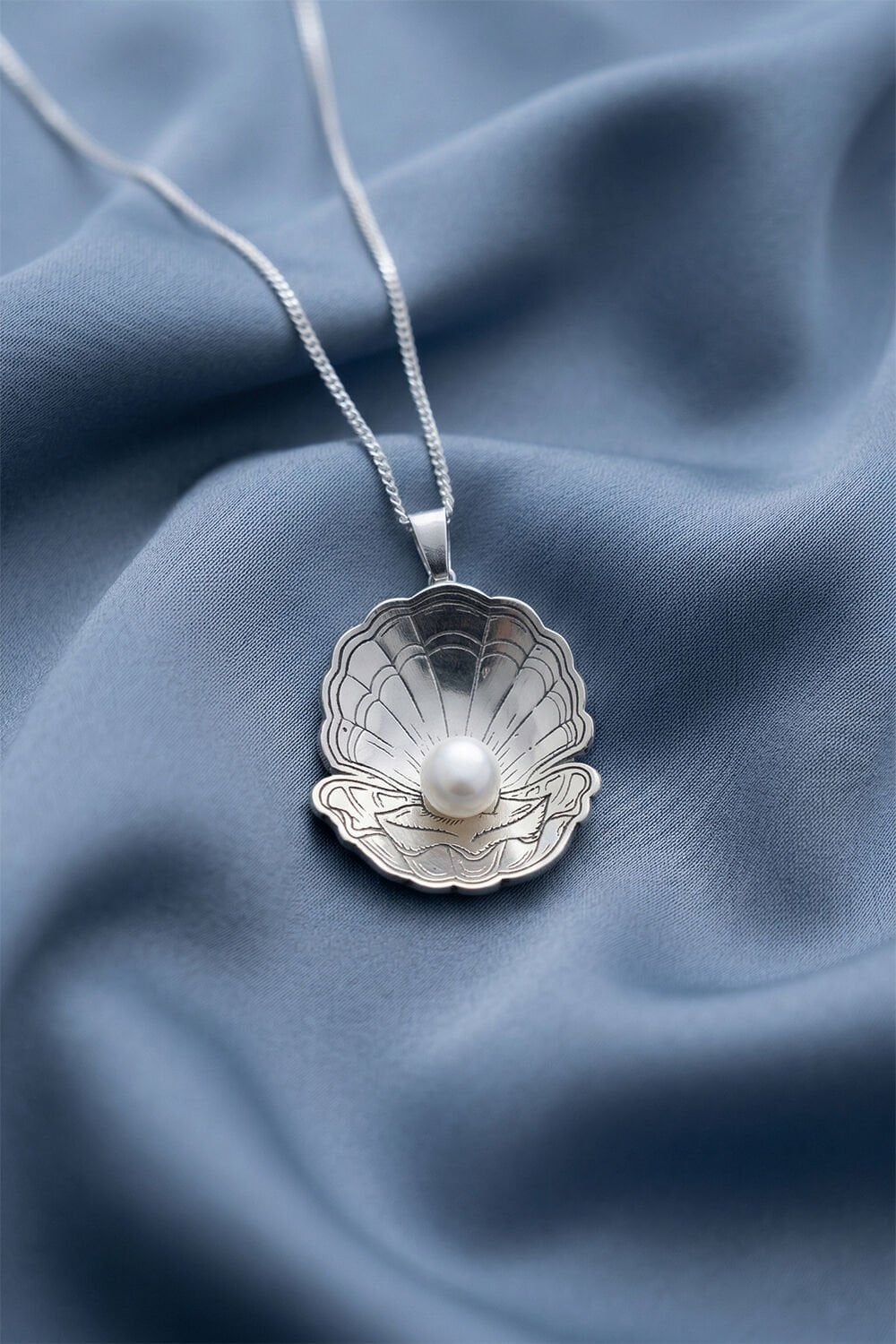 925 Ayar Gümüş Özel Tasarım İstiridye Doğal İnci Kolye