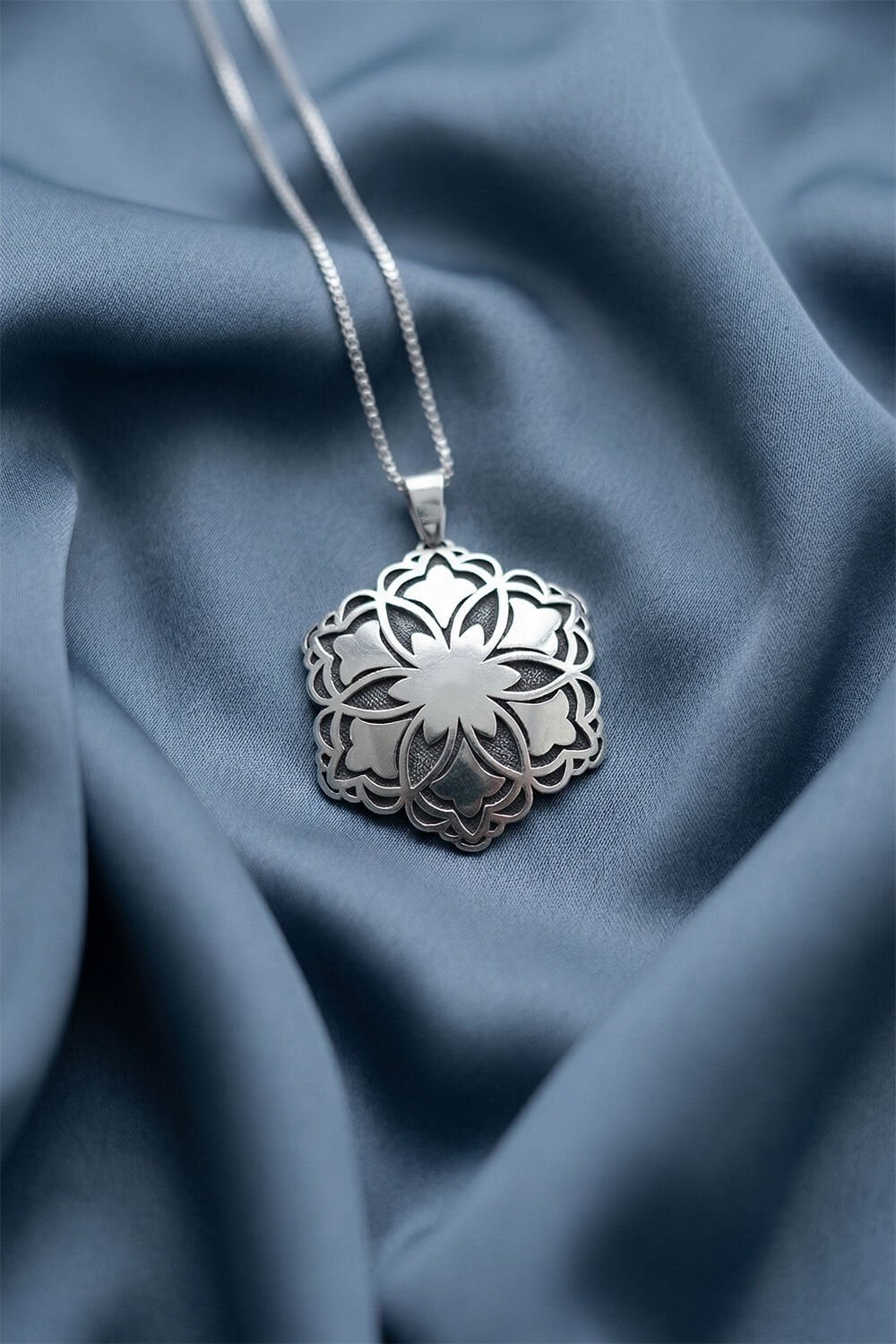 Özel Tasarım Nilüfer Çiçeği Model Gümüş Kolye