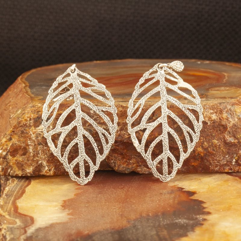 Özel Tasarım Yaprak Model El İşi Gümüş Küpe |