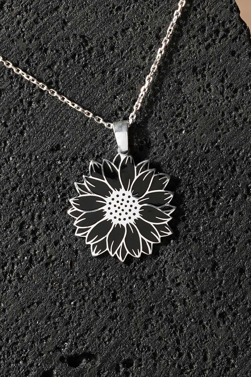 Papatya Model Siyah Mineli 925 Ayar Gümüş Kolye – Unisex Tasarım