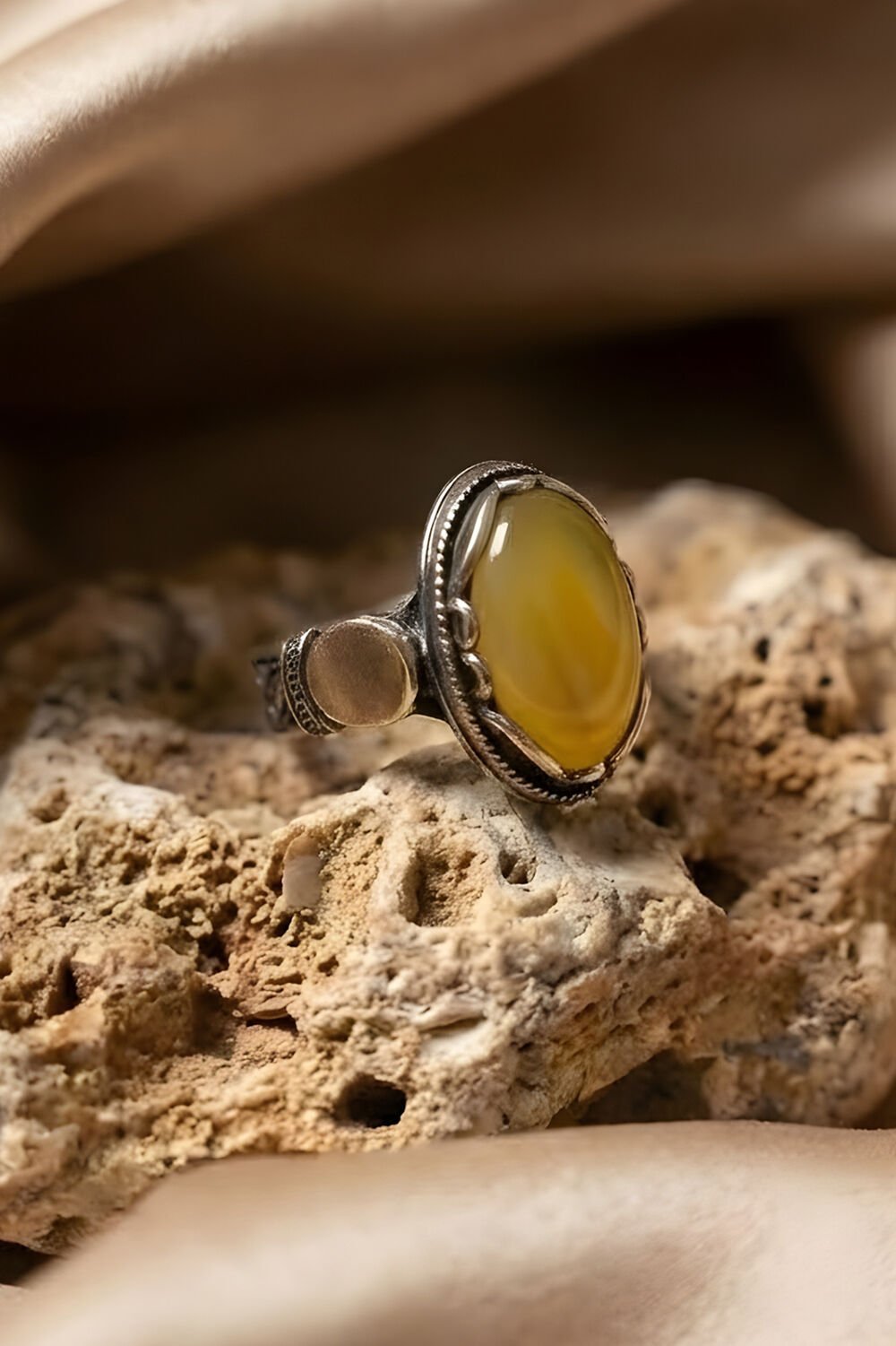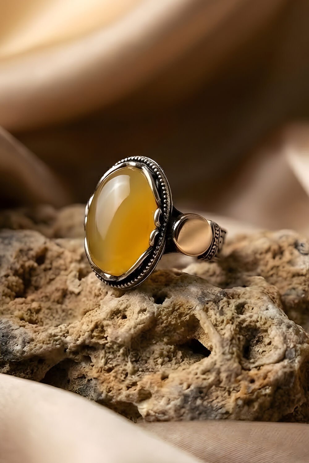 Payitaht Model Sarı Akik Taşlı Gümüş Erkek Yüzük |