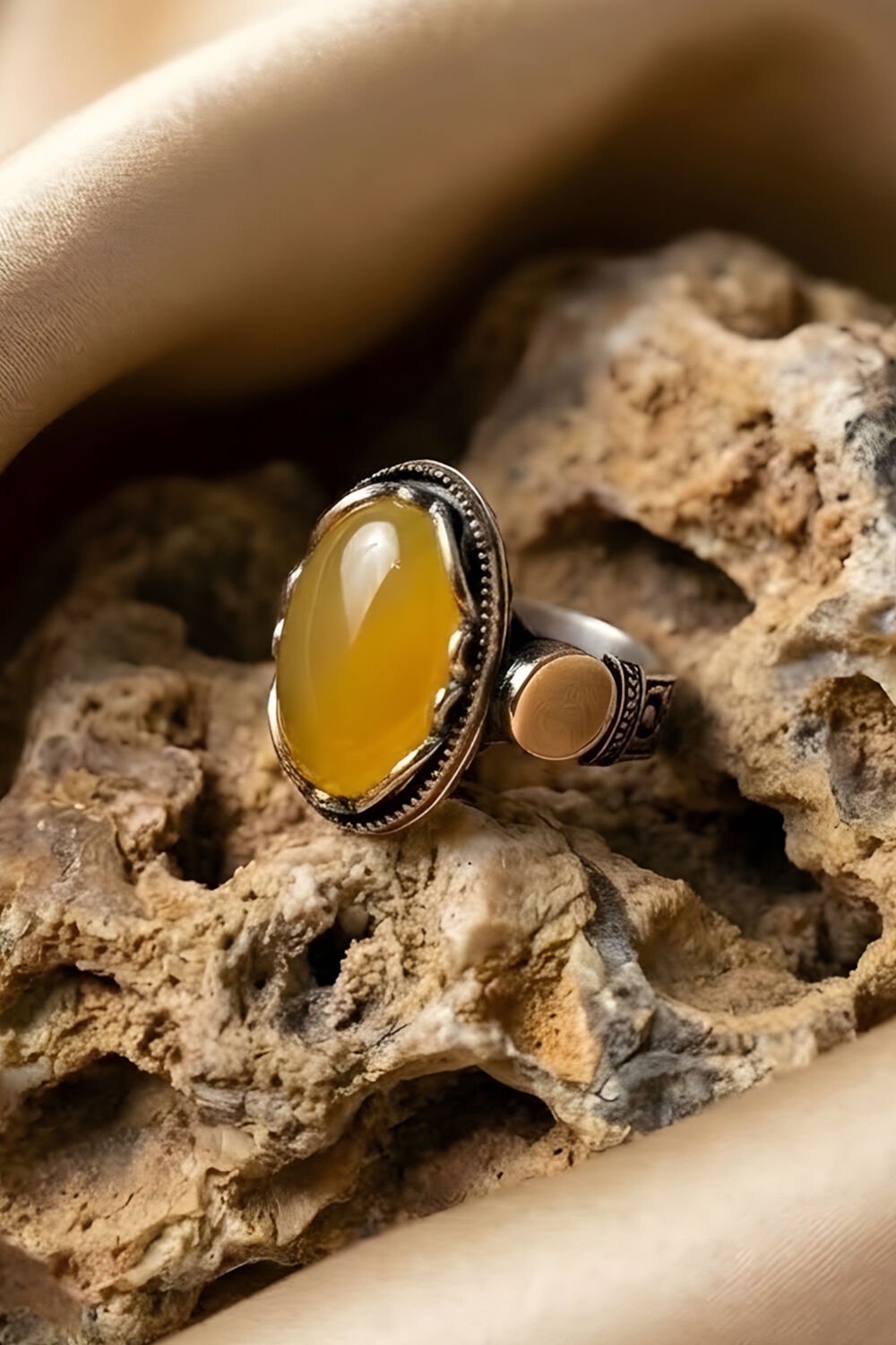 Payitaht Model Sarı Akik Taşlı Gümüş Erkek Yüzük