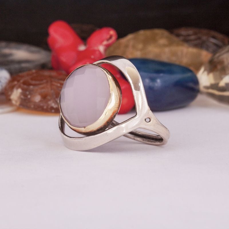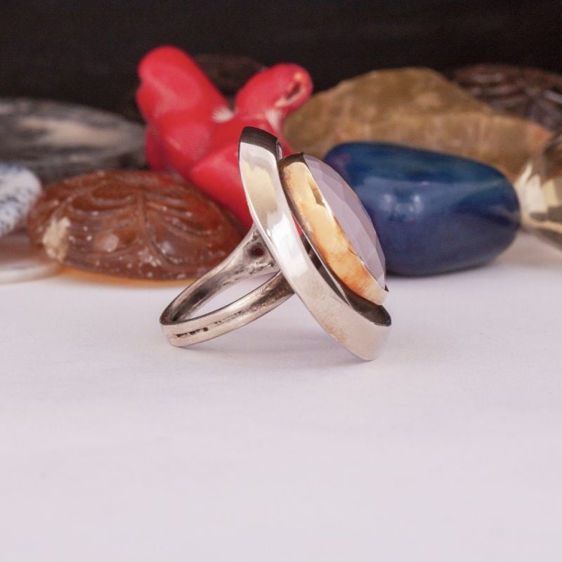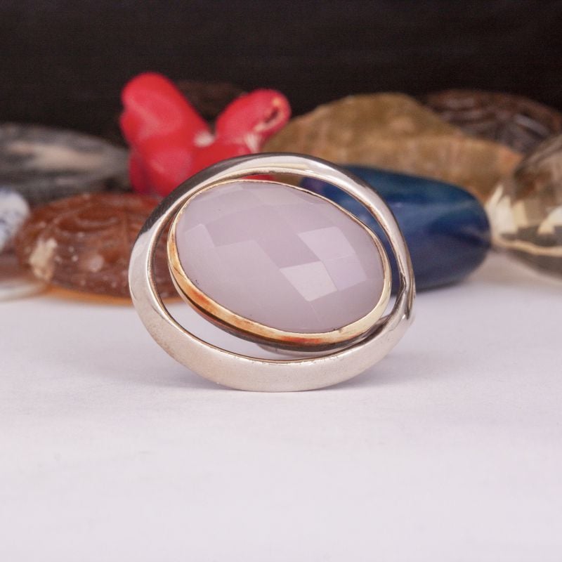 Pembe Kuvars El İşi Özel Tasarım Gümüş Yüzük