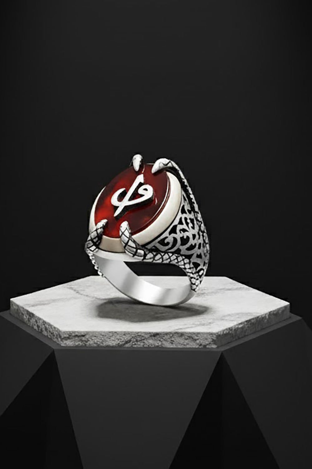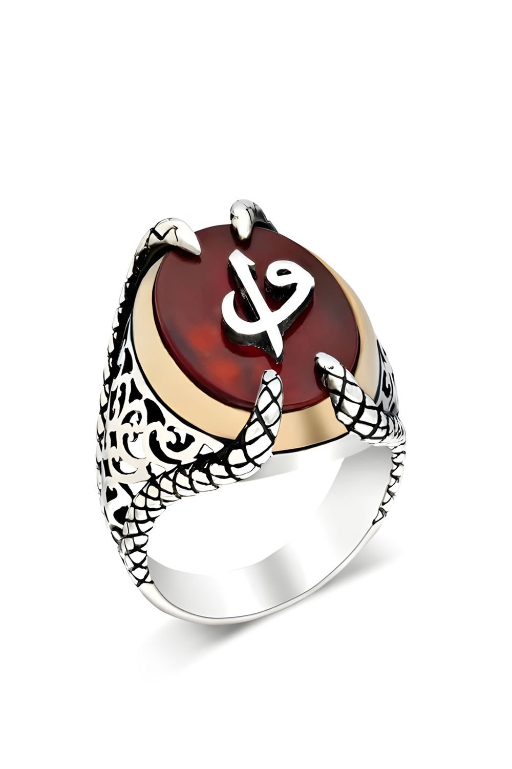 Pençe Model Akik Taş Üzeri Vav Elif Yüzük |