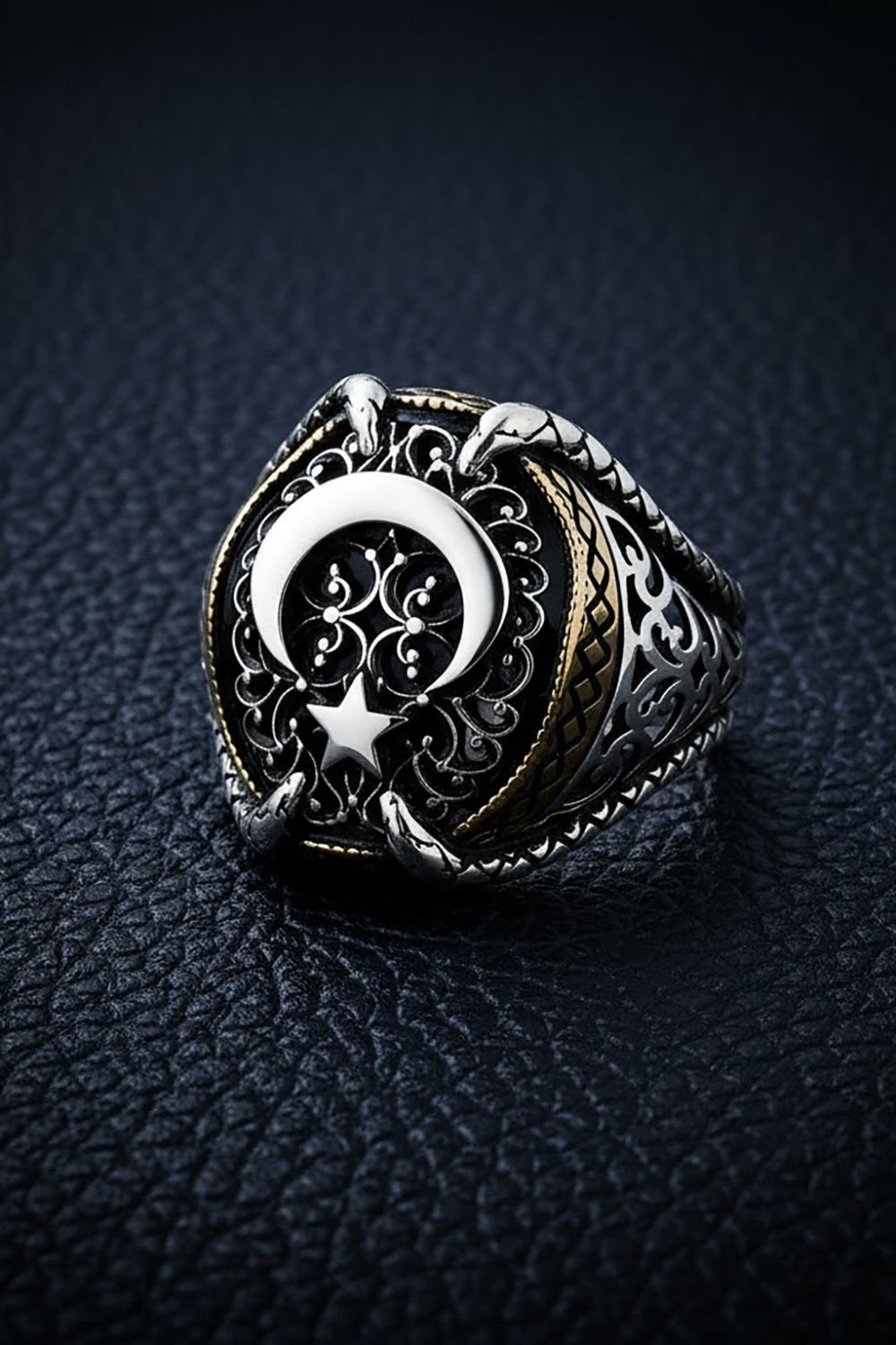 Pençe Model Ay Yıldız Gümüş Yüzük