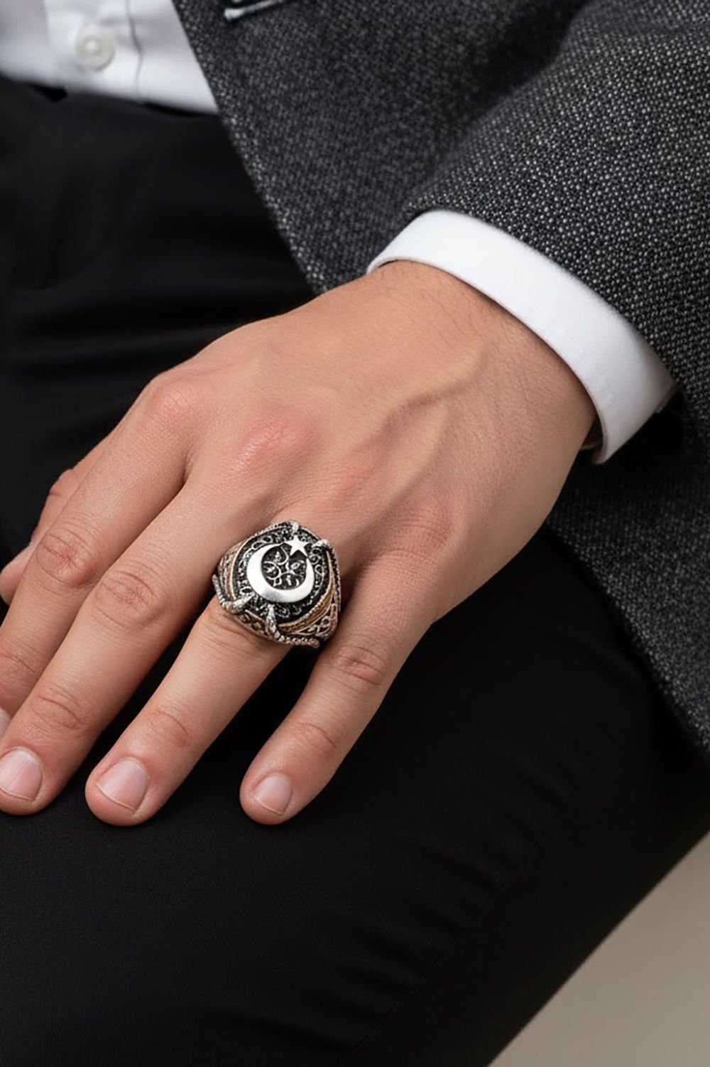 Pençe Model Ay Yıldız Gümüş Yüzük |