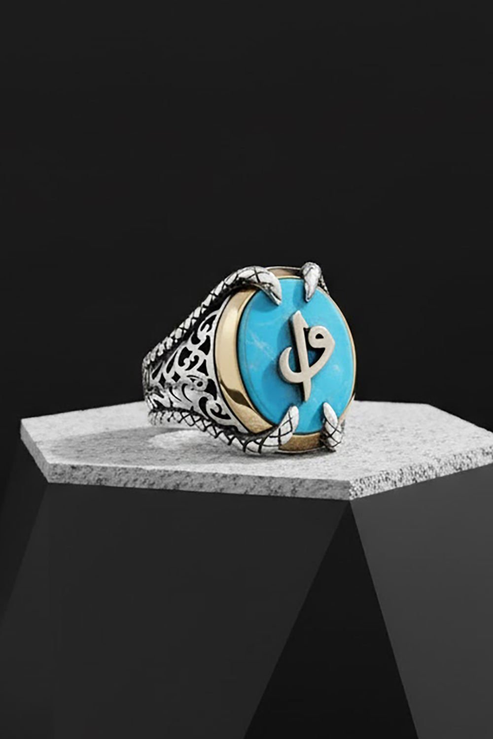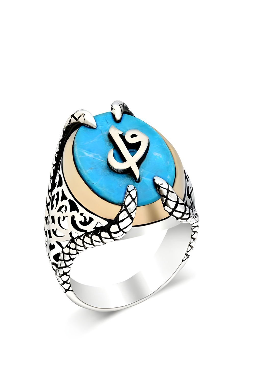 Pençe Model Firüze Taşı Üzerine Vav Elif Yüzük |