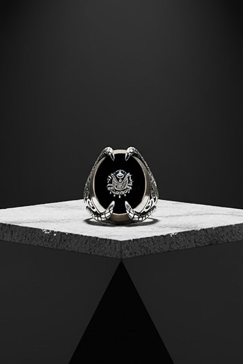 Pençe Model Oniks Taş Üzerine Devlet Arması Yüzük |