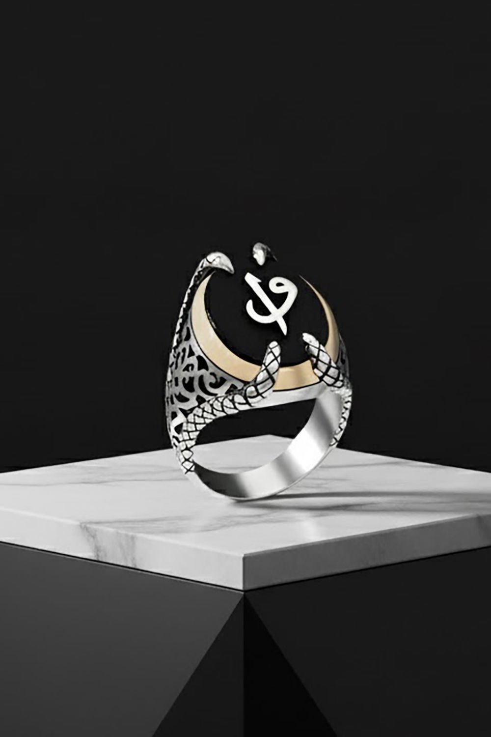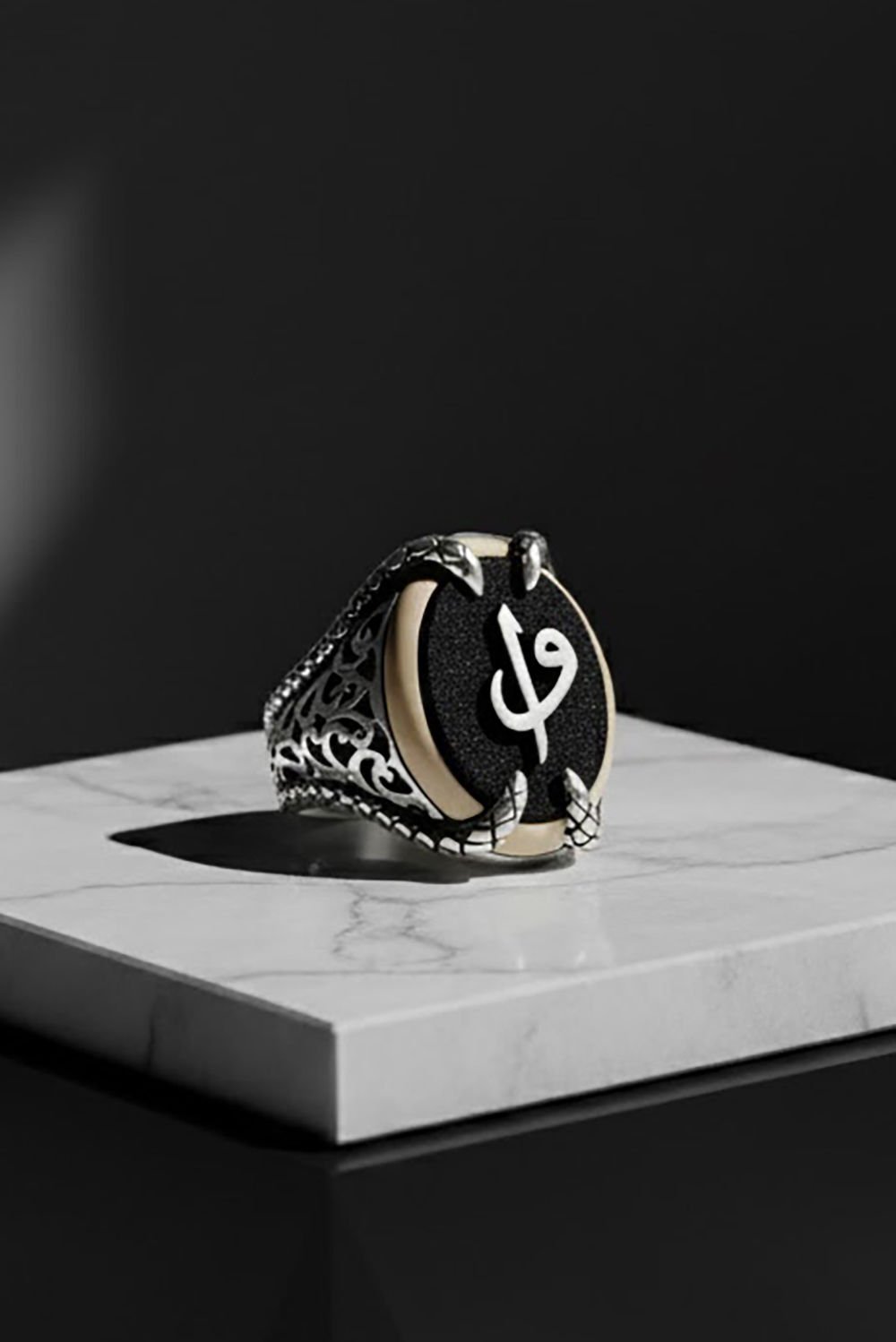Pençe Model Oniks Taşı Üzerine Vav Elif Yüzük |