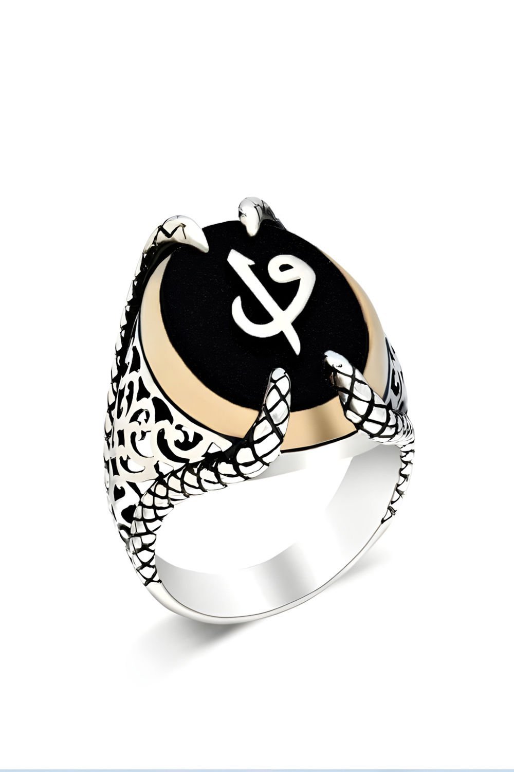 Pençe Model Oniks Taşı Üzerine Vav Elif Yüzük
