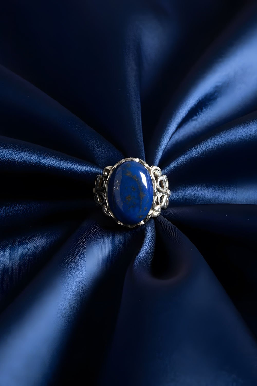 Rumi Model Lapis Lazuli Taşlı El İşi Gümüş Yüzük |