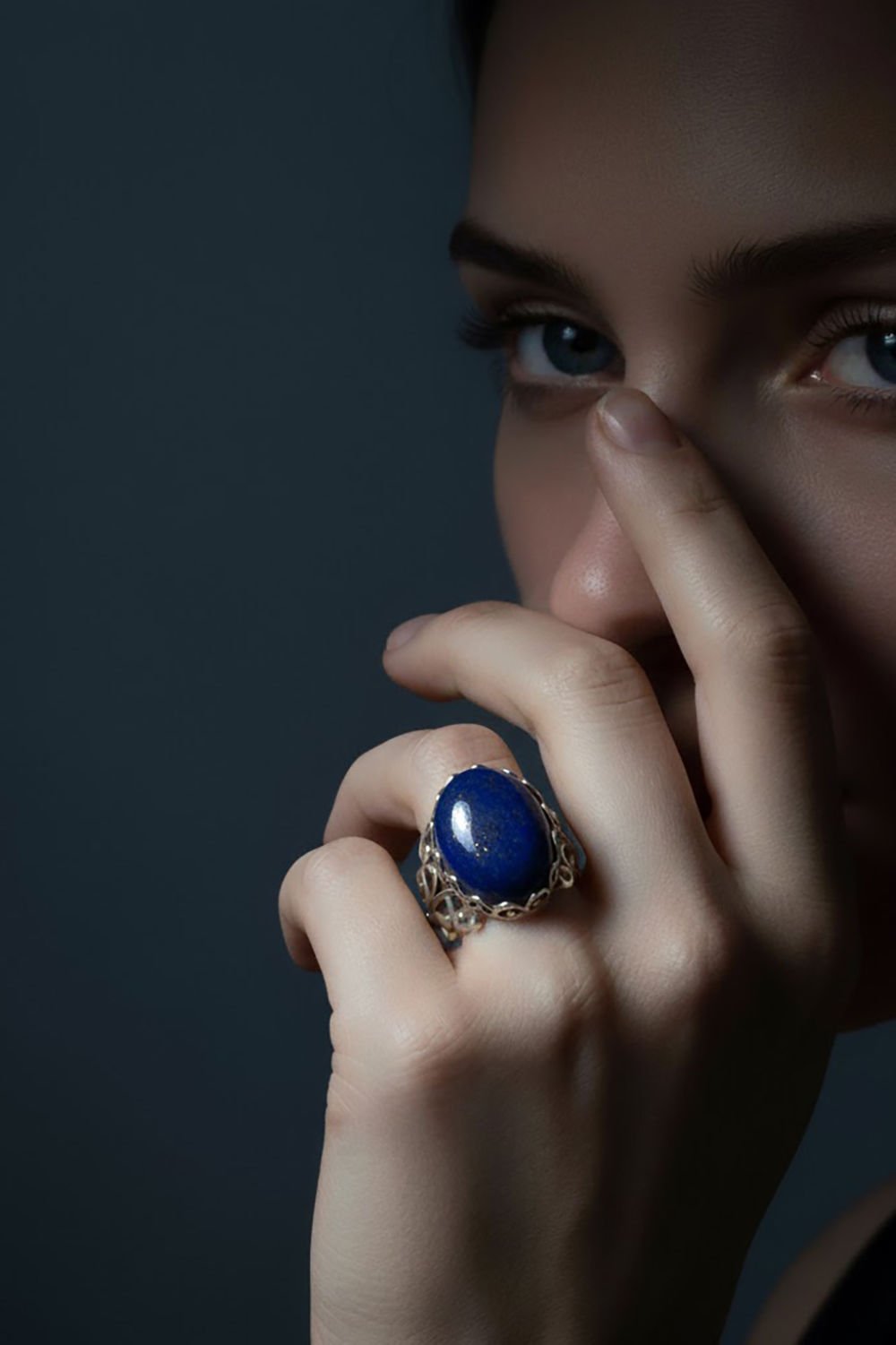 Rumi Model Lapis Lazuli Taşlı El İşi Gümüş Yüzük