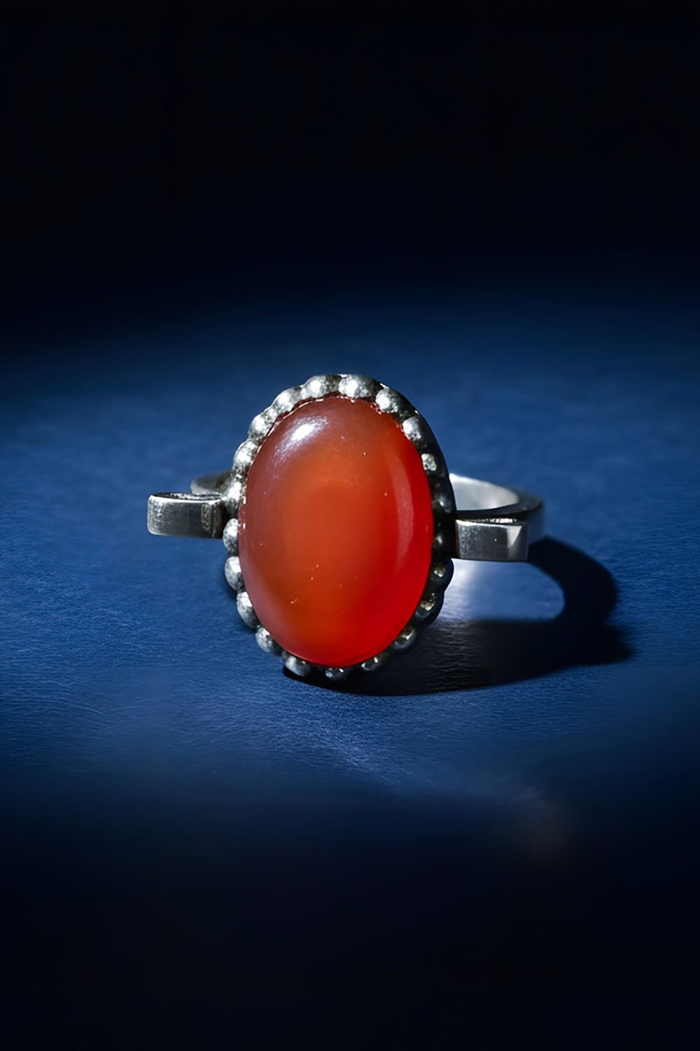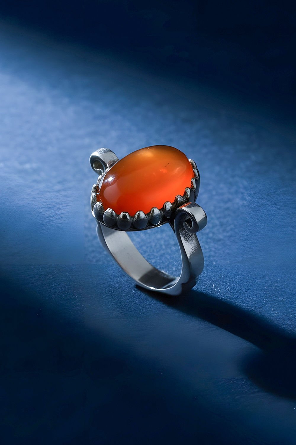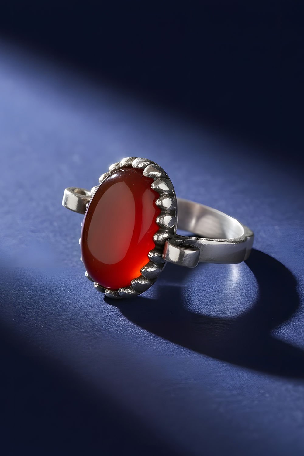 Sade Model Akik Taşlı El İşi Gümüş Yüzük |
