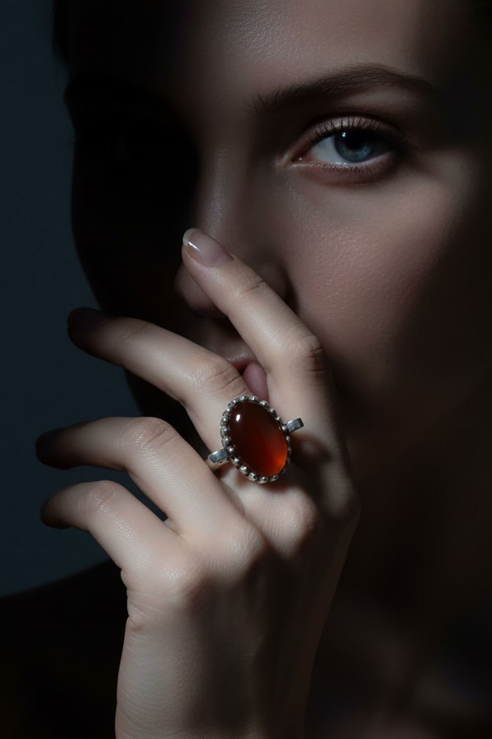 Sade Model Akik Taşlı El İşi Gümüş Yüzük