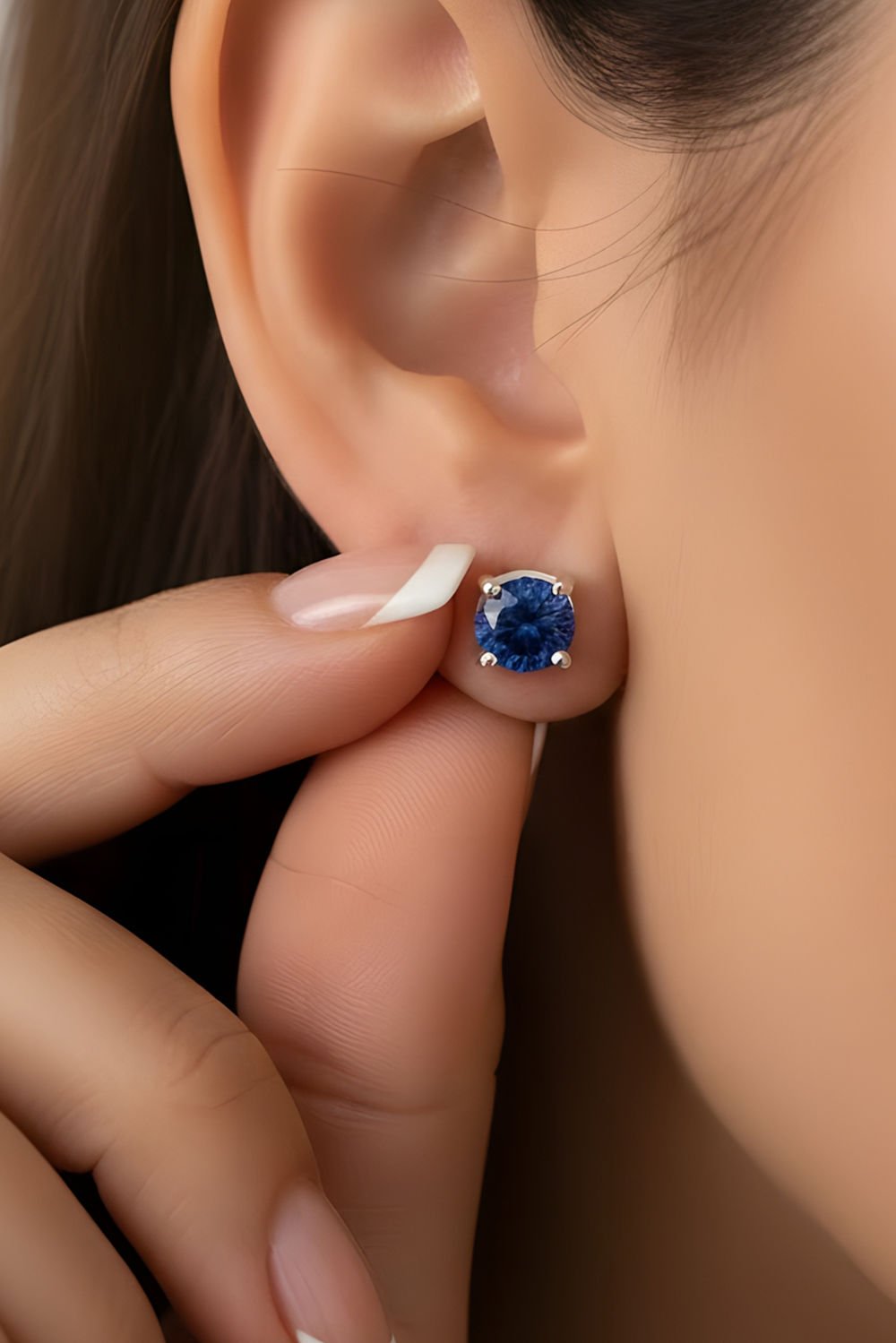 Safir Renk Zirkon Taşlı Tek Taş Model Küpe