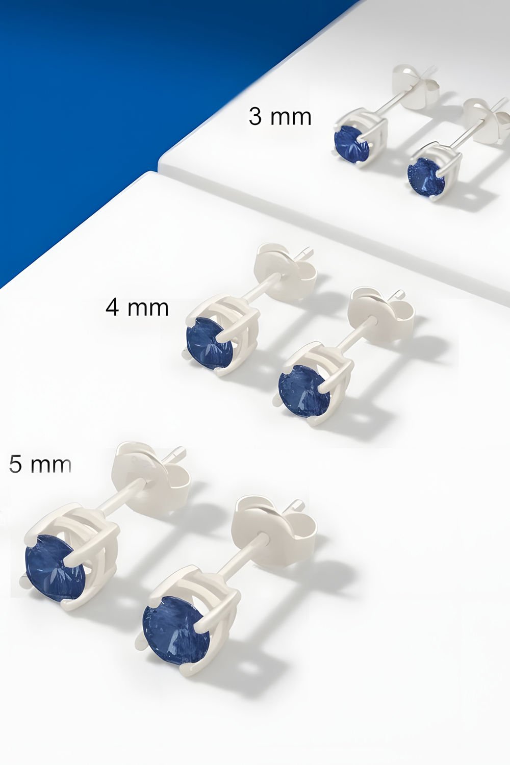 Safir Renk Zirkon Taşlı Tek Taş Model Üçlü Küpe Set
