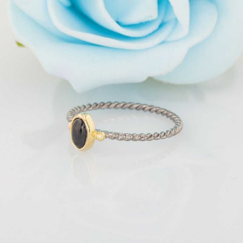 Safir Taşlı El İşi Minimal Gümüş Yüzük |