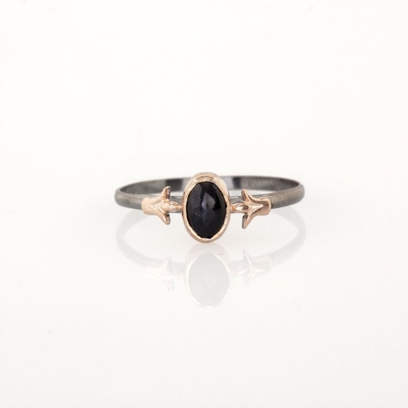 Safir Taşlı El İşi Minimal Gümüş Yüzük |