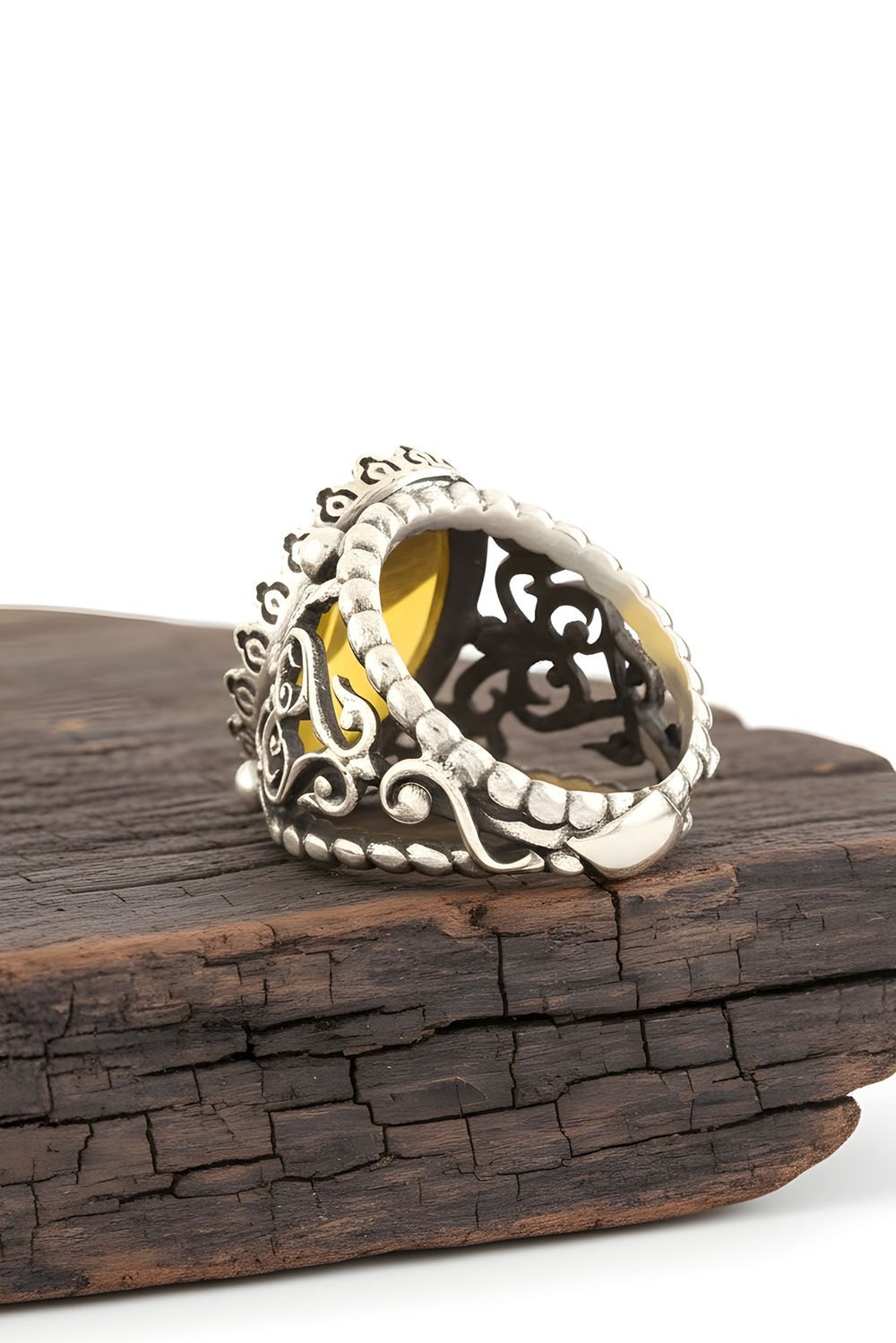 Sarı Akik Taşlı El İşi Gümüş Yüzük |