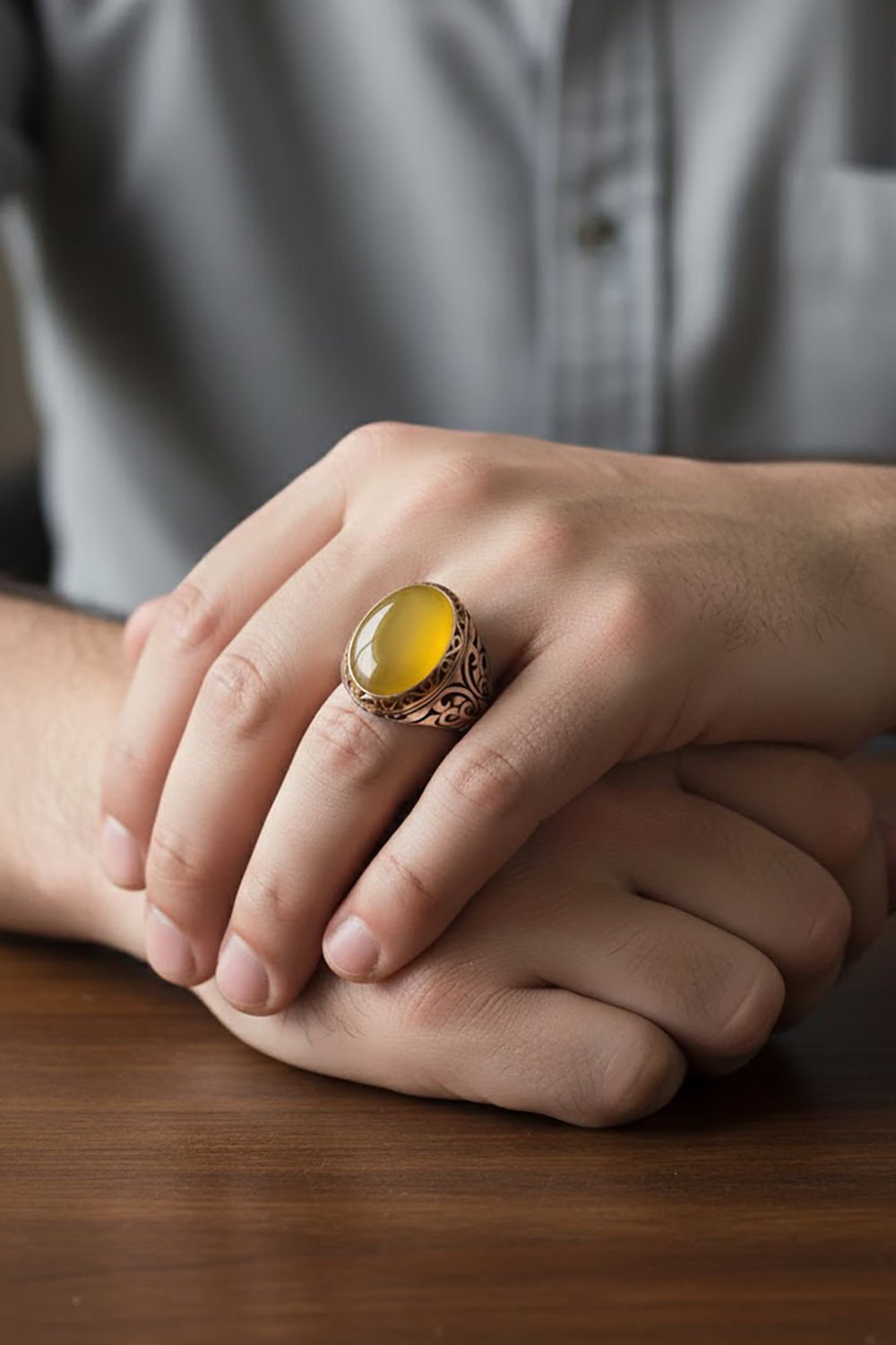 Sarı Akik Taşlı Gümüş Erkek Yüzük |