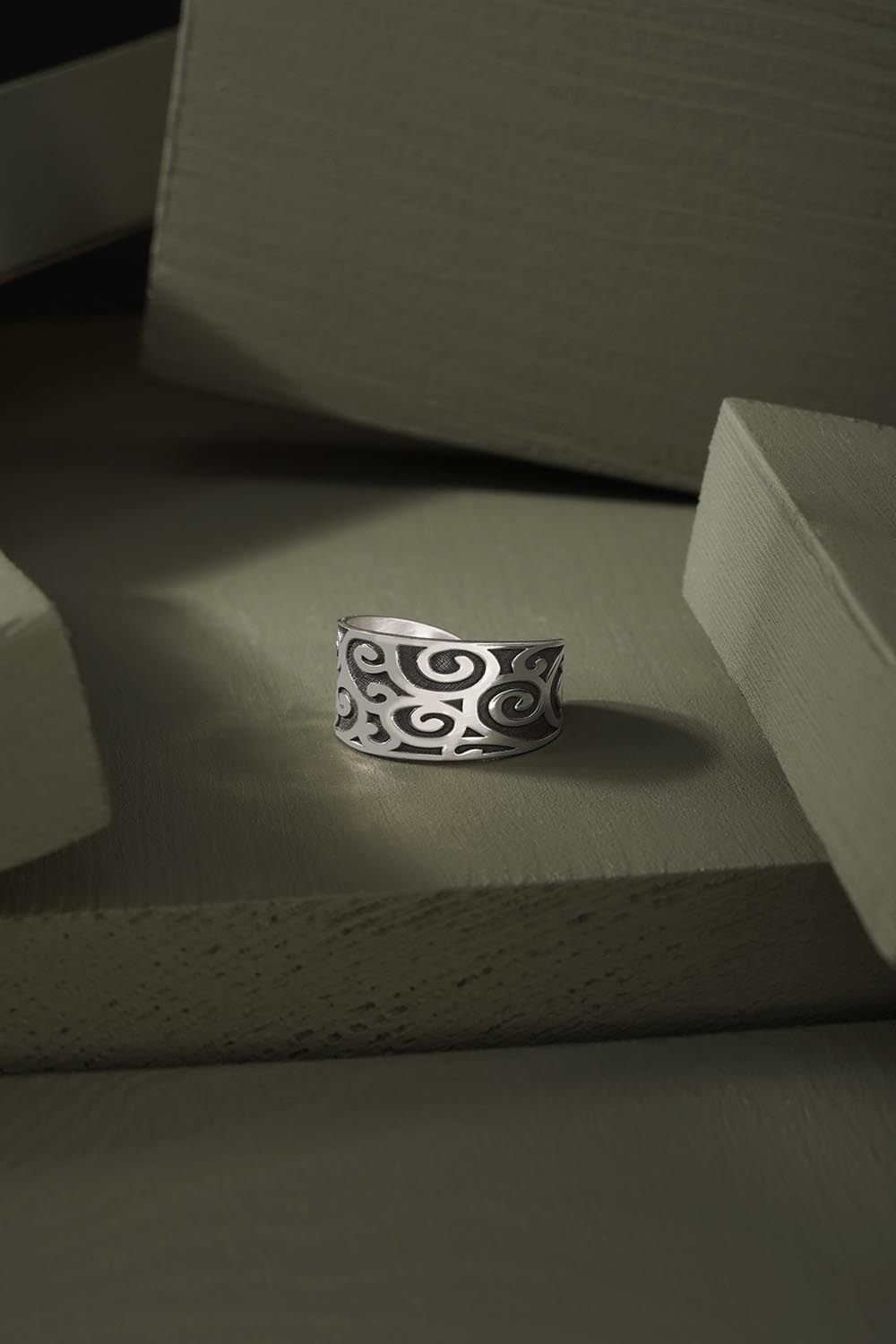 Sarmal Desenli 925 Ayar Gümüş Ayarlanabilir Yüzük