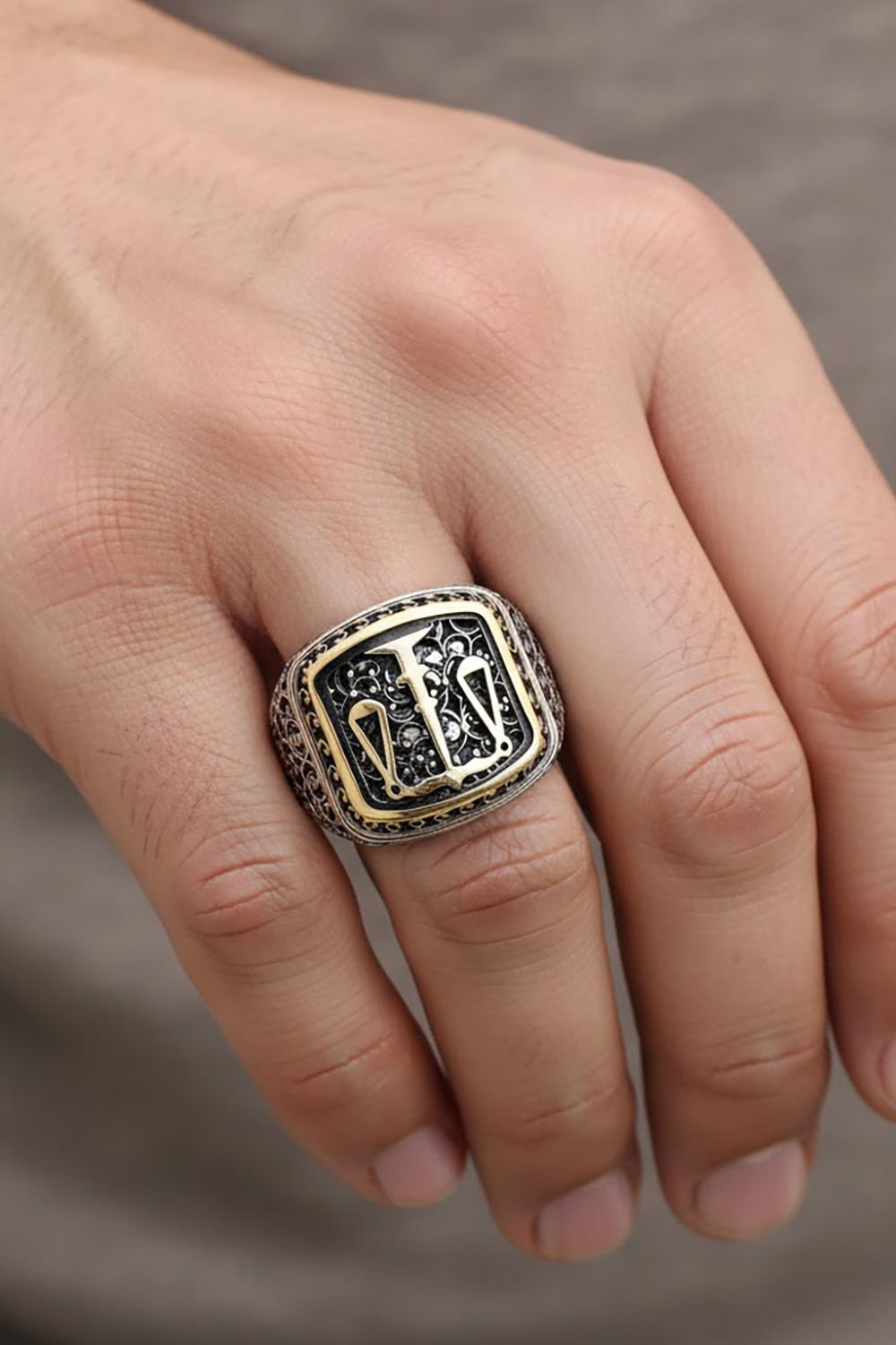 Yüzük, kenar kısımlarındaki işlemeleri ve minimal tasarımı ile dikkat çekmektedir.