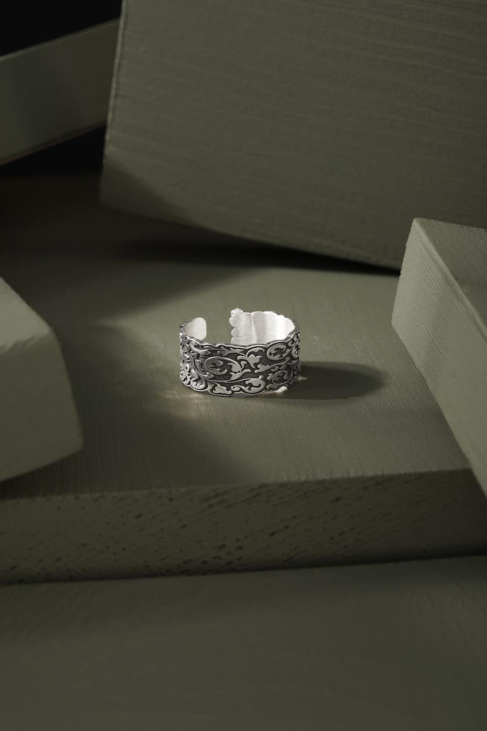 Sarmaşık Gravür Desenli Ayarlanabilir Gümüş Yüzük