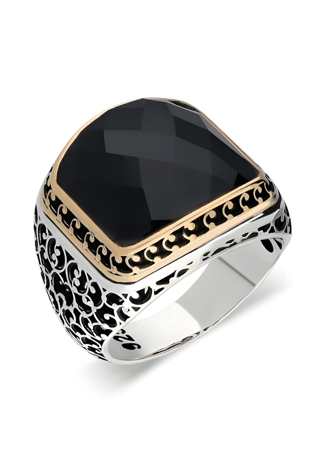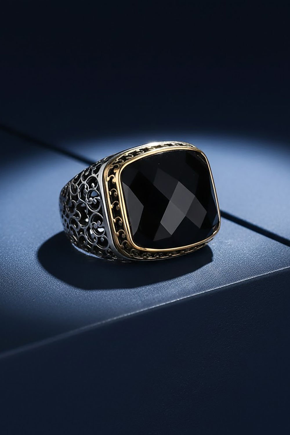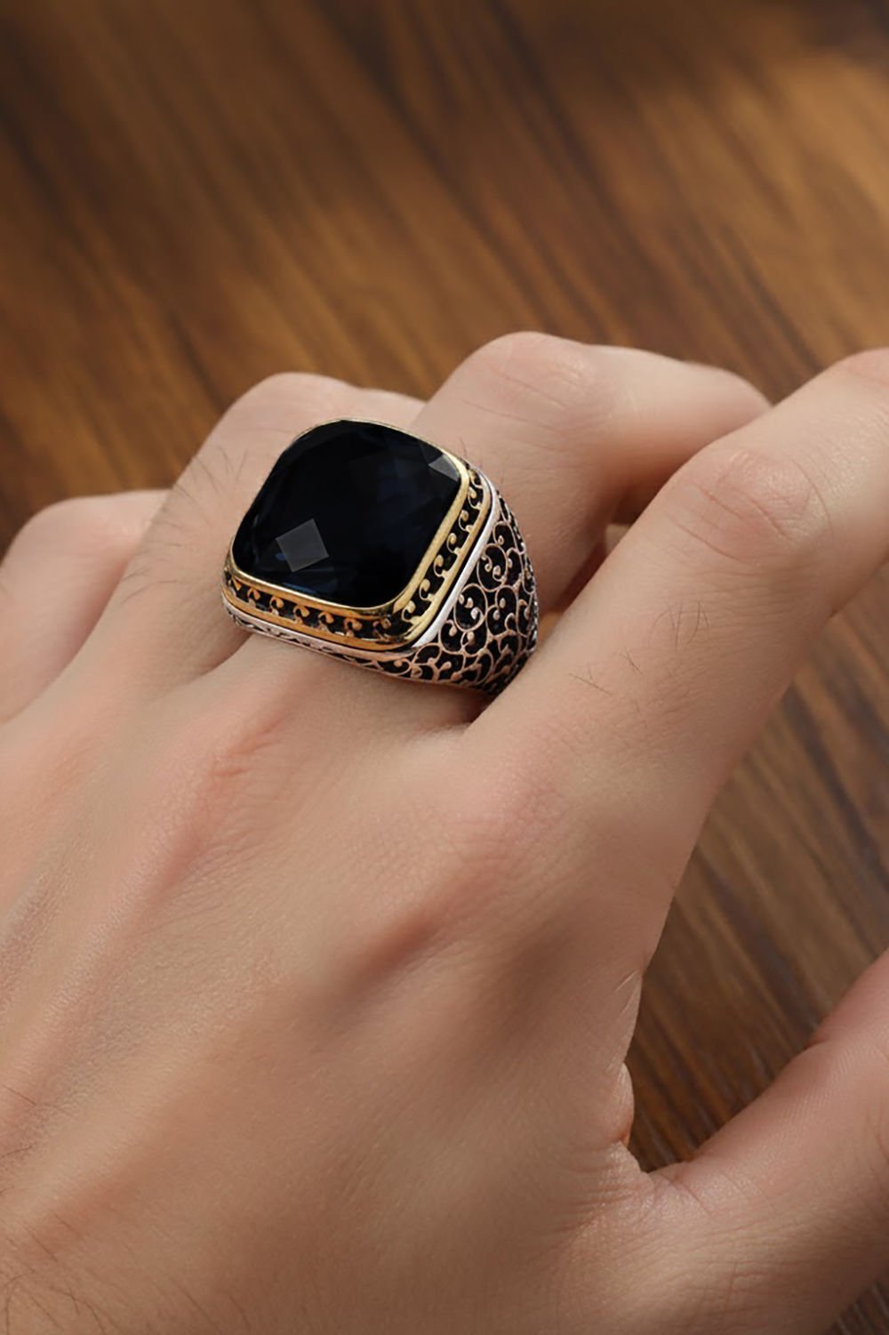 Bu özel erkek yüzüğü, doğal siyah zirkon taşı ve 925 ayar gümüş ile ustaca işlenmiştir. El işçiliği ve özel tasarımıyla dikkat çekici bir parçadır.