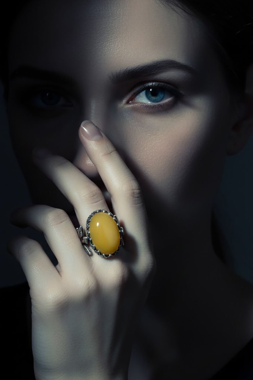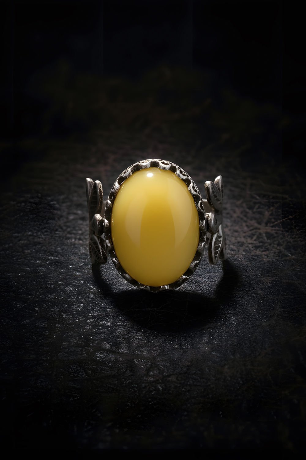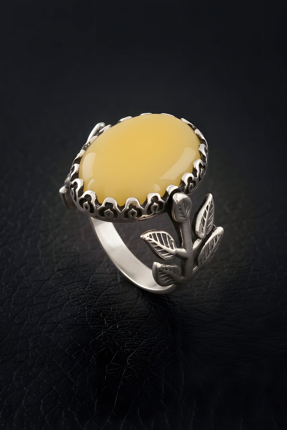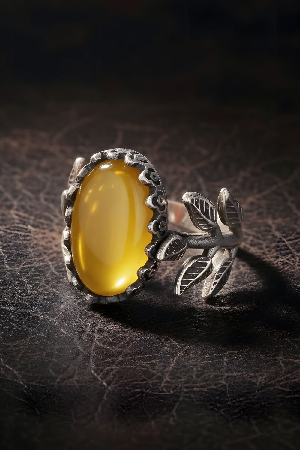 Sarmaşık Model Sarı Akik Taşlı El İşi Gümüş Yüzük |