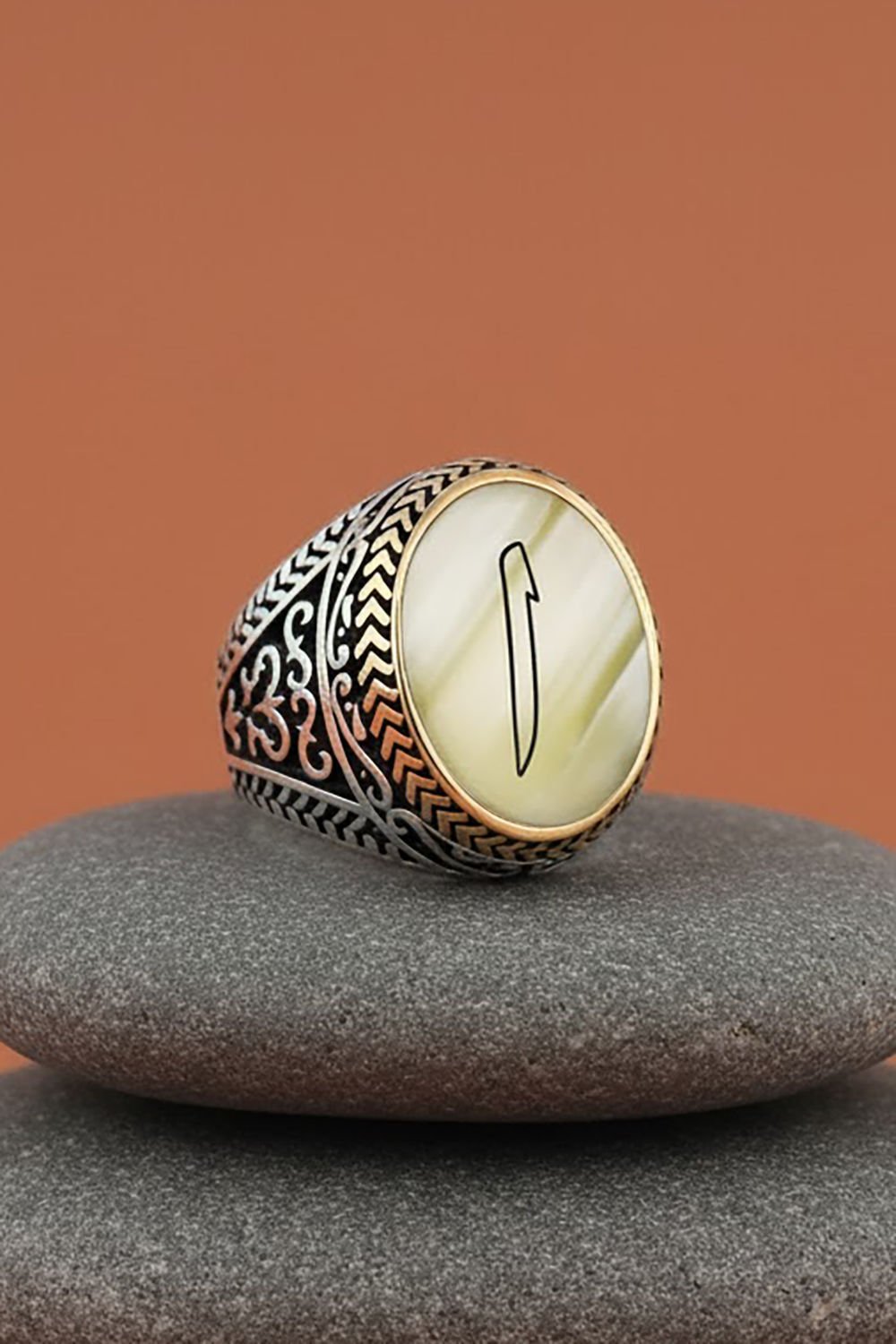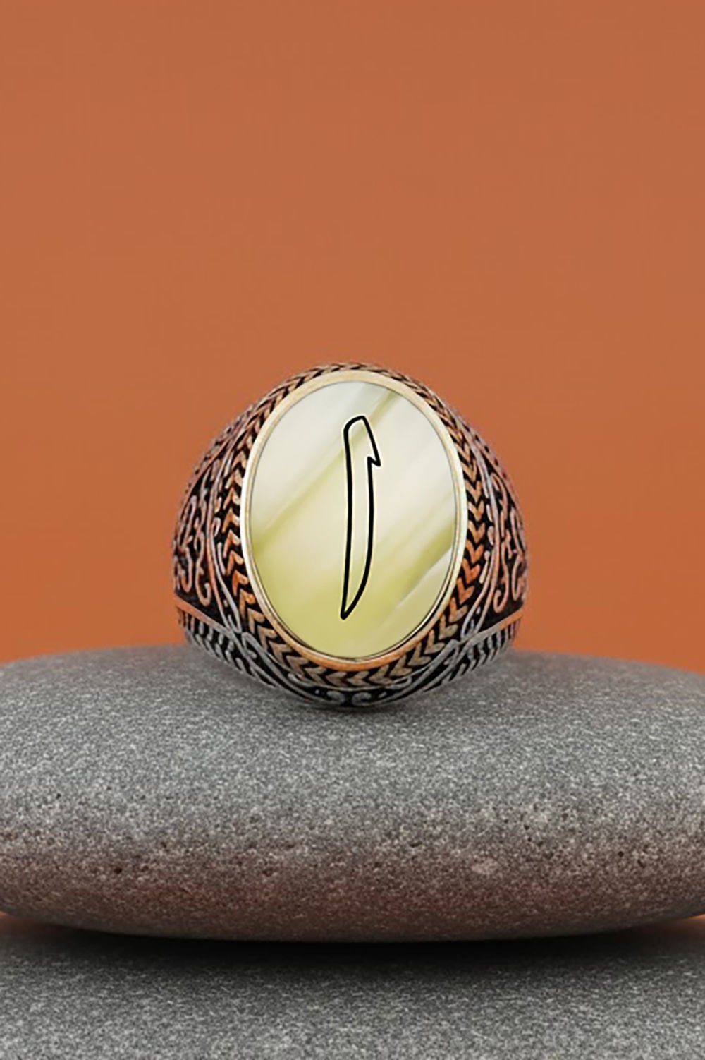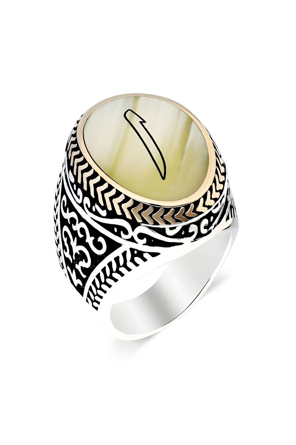 Sedef Taşı Üzerine Elif Gümüş Erkek Yüzük |
