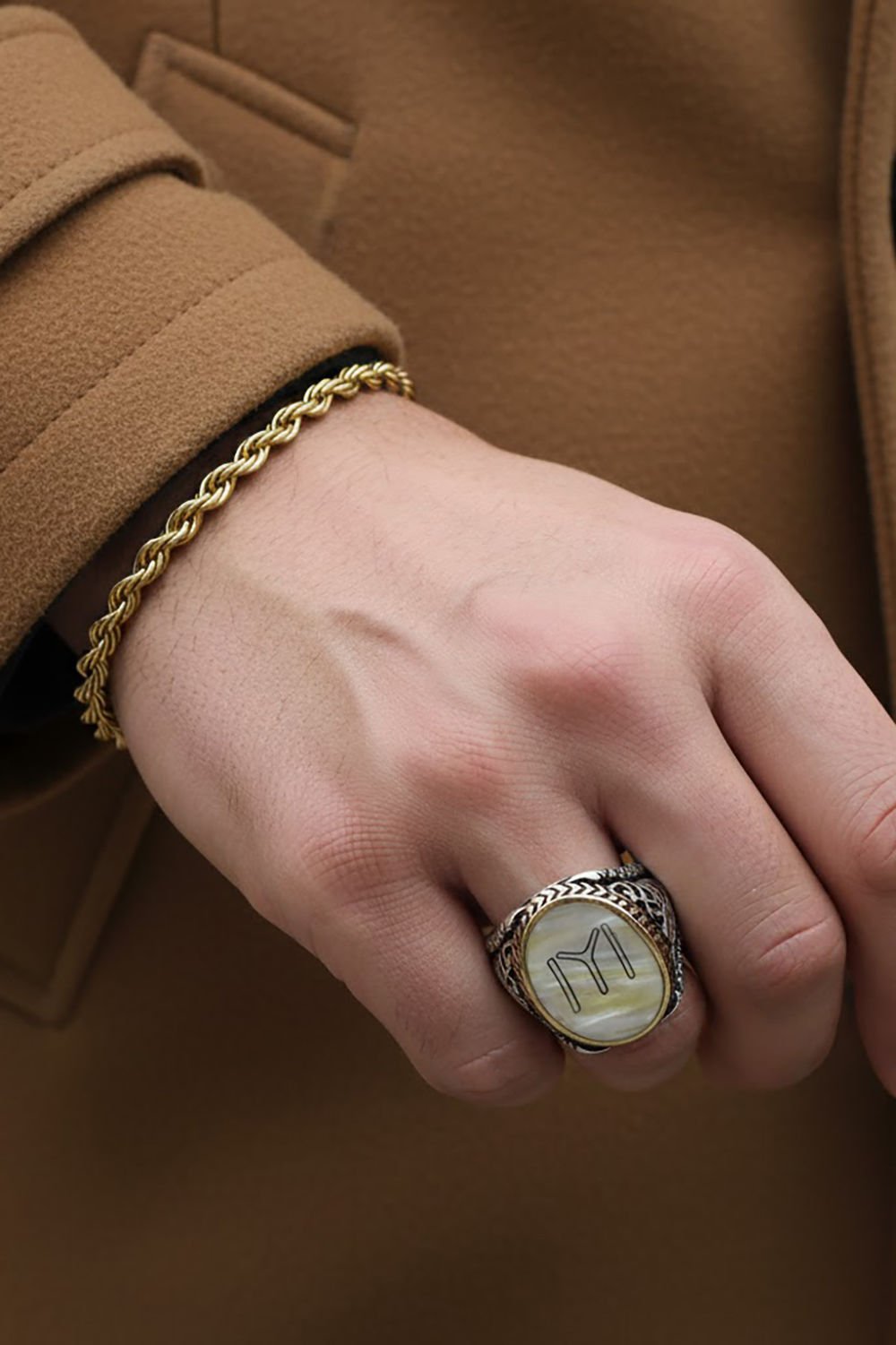 Bu yüzük, deneyimli zanaatkarlar tarafından elde işlenmiş ve her bir detayı özenle işlenmiştir. Kayı boyu arması deseni ve özel tasarımıyla şıklığı ön plana çıkarır.