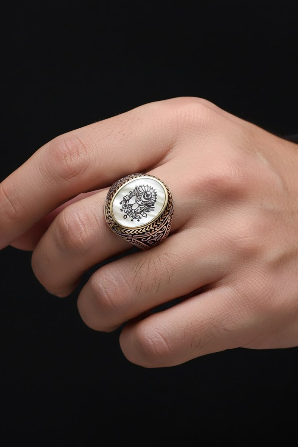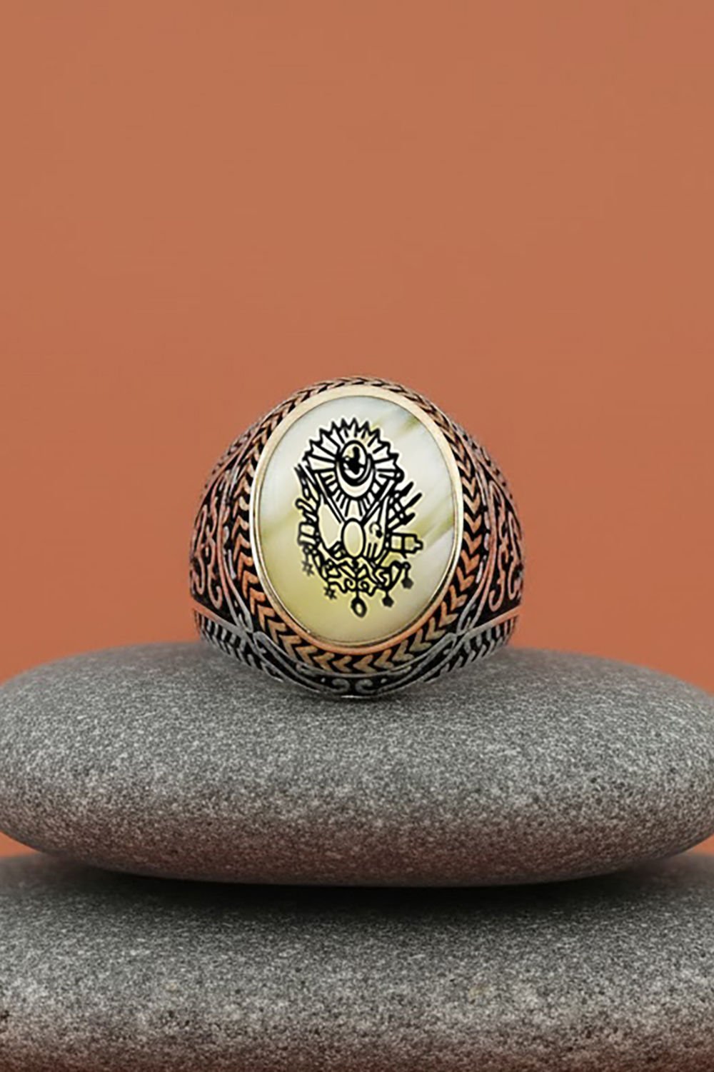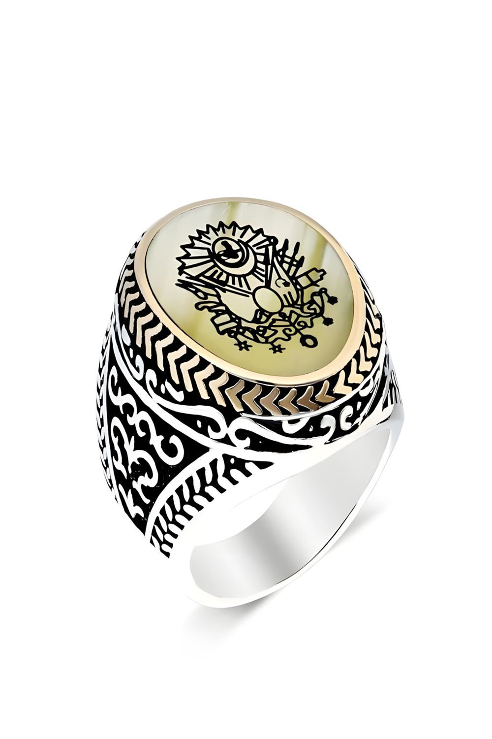 Sedef Taşı Üzerine Osmanlı Devlet Arması Yüzük |