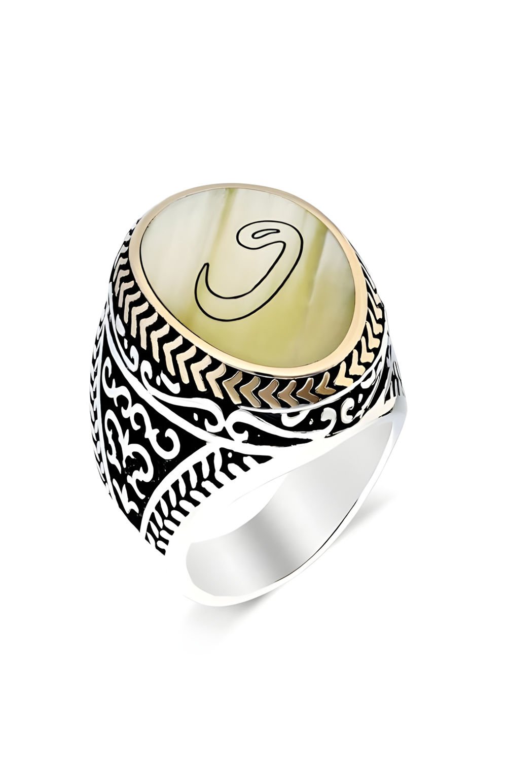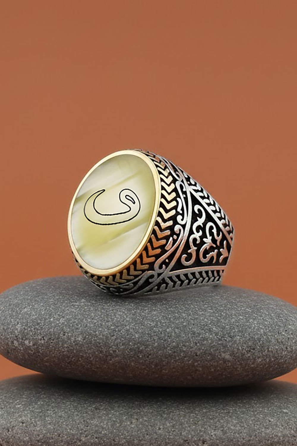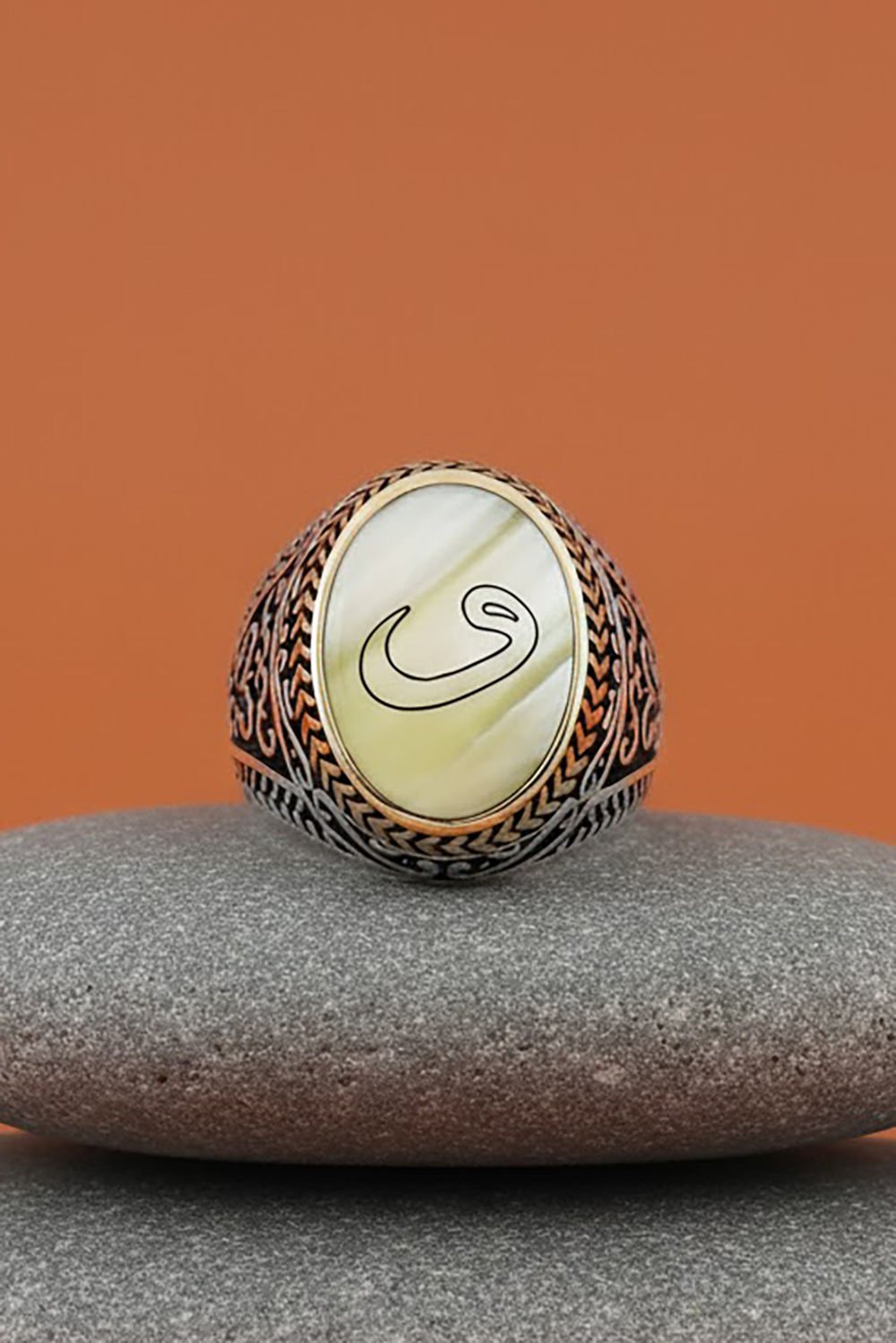 Sedef Taşı Üzerine Vav Gümüş Erkek Yüzük |